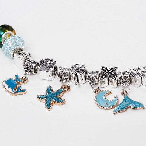 Набор бусин BEADS SET от BRAUBERG KIDS – идеальный подарок для маленьких рукодельниц. С таким набором можно создать множество вариаций ярких украшений своими руками. В наборе есть все необходимое для уникального образа в единой тематике. С набором для создания украшений для девочки BRAUBERG KIDS в аквамариновых оттенках ребенок может сделать браслеты, колечки, кулоны, подвески, чокеры, шнурки для телефона и очков, ожерелья и множество других поделок. Яркие цвета бусин сочетаются между собой, а металлические шармы добавляют изюминку. В набор "Аквамарин" входят 66 элементов: 20 пластиковых бусин различных цветов, 20 металлических шармов разных размеров, 20 металлических подвесок, 3 металлические заготовки для изготовления браслетов, 3 основы для ожерелий. Все элементы украшений изготовлены из гипоаллергенного бижутерного сплава, который не вызовет раздражения кожи. Длина основ регулируется, поэтому браслетики подойдут даже на тонкую детскую руку. Набор представлен в подарочной упако