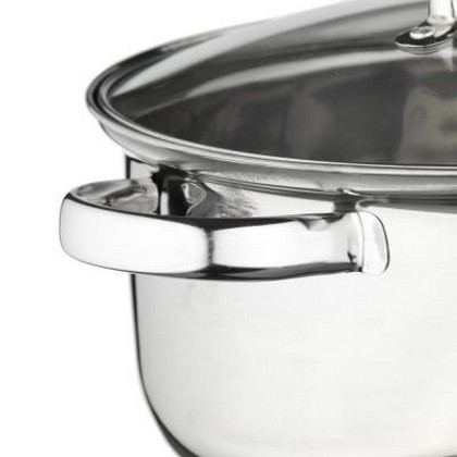Рекомендации При приготовлении пищи в посуде из нержавеющей стали лучше использовать деревянные, пластиковые или силиконовые кухонные аксуссуары. Иногда на дне посуды появляются радужные пятна или темные точки, что не является браком изделия. Появление пятен связано с составом воды или солью, которую добавили в холодную воду. При мытье посуды не рекомендуется использовать жесткие губки и абразивные моющие средства. Тип дна Для всех типов плит, кроме индукции Тип крышки Стеклянная крышка