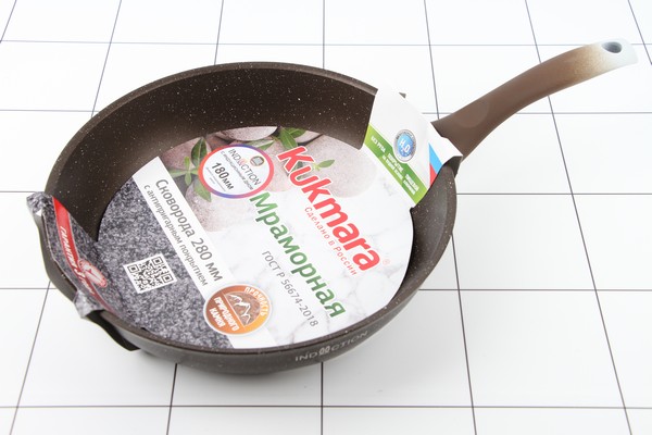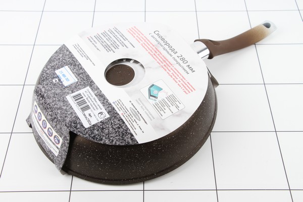 Диаметр - 28 см. Высота - 6.5 см. Для индукционных плит