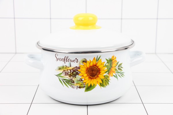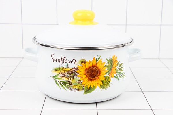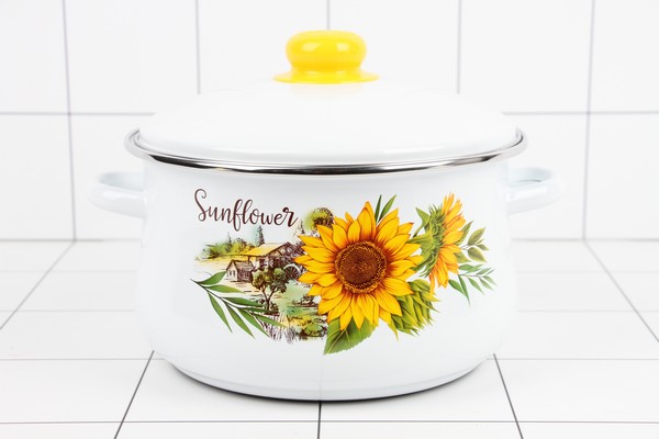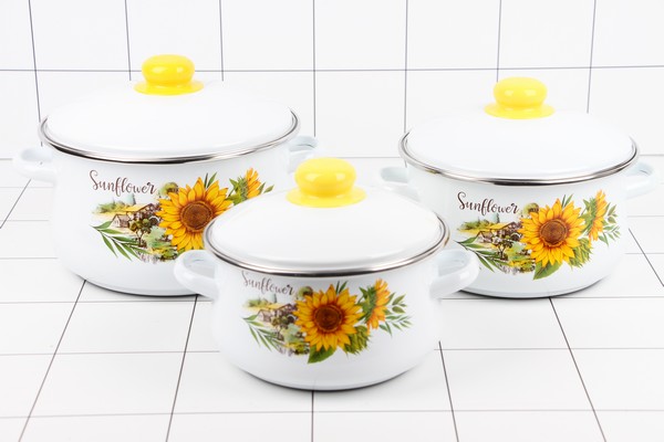 НАБОР Кастрюль (2л, 3л, 4л) Подсолнухи белый 7-329/4