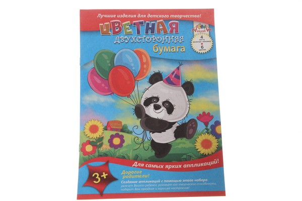 Цветная мелованная двусторонняя бумага. 4 листа, 6 цветов, включая цвета на обложке. Формат: А4, плотность 60 гр/м2. Внутренний блок - мелованная бумага двойного прокраса, что дает насыщенность цвета. В наборе цвета: красный, синий, коричневый, желтый, зеленый, розовый. Крепление - скоба, обложка - мелованная бумага. Рекомендуется детям от 3 лет.