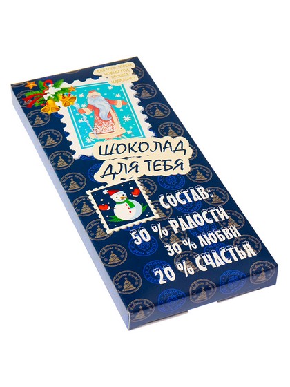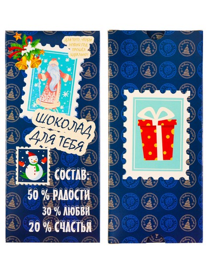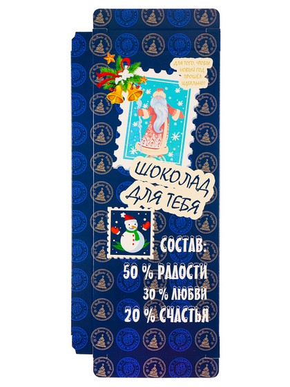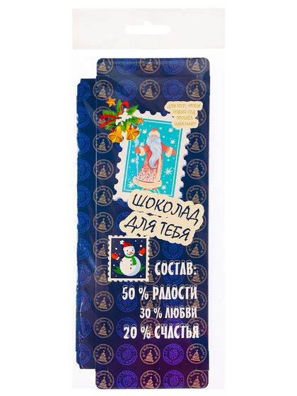 Шоколад — незаменимое дополнение к новогоднему подарку! Оригинальная упаковка любимой сладости преобразит даже банальный презент. Кроме того, она станет отличной альтернативой надоевшим открыткам. Размер: 19х8 см.