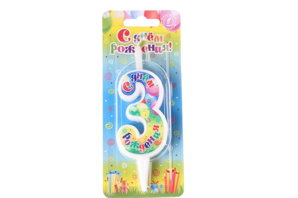 СВЕЧА цифра 3 С днем рождения 5873 /30шт