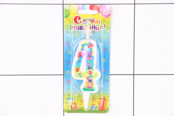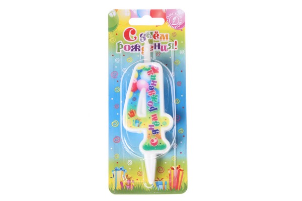 СВЕЧА цифра 4 С днем рождения 5874 /30шт
