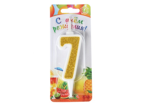 СВЕЧА тортовая 7 суперблеск, золото 3667 /30шт