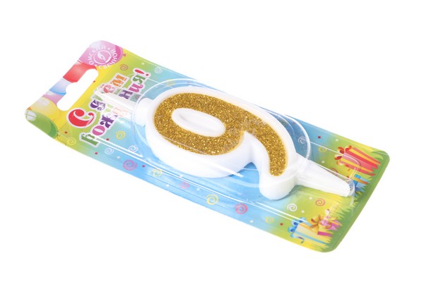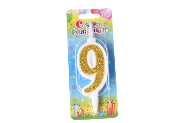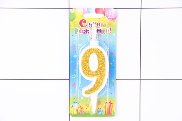 СВЕЧА тортовая 9 суперблеск, золото 3669 /30шт