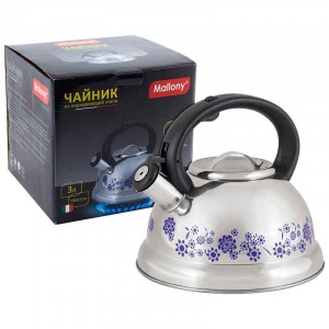Купите товар «558324 Чайник метал. со свистком (0,4мм) MAL-0417B, 3л, ручка нейлон, меняет цвет при нагрев., 2103 Mallony» по оптовой цене с доставкой или самовывозом. В Екатеринбурге и других городах.