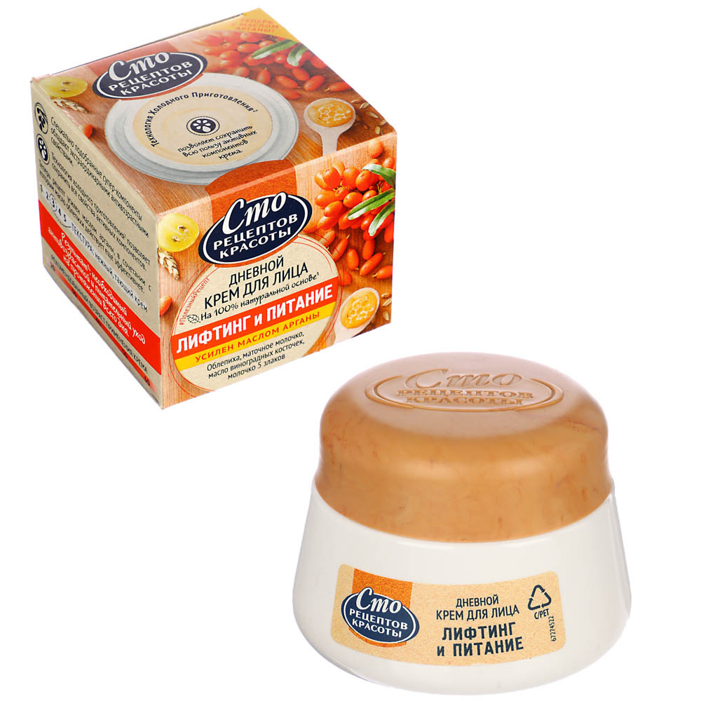 Крем для лица дневной Сто рецептов красоты «Лифтинг и питание» призван сохранить молодость и эластичность кожи. Активная формула с натуральными маслами облепихи и виноградных косточек питает кожу, борется с воспалениями, восстанавливает овал лица, устраняя неровности на поверхности кожи, делая ее бархатистой на ощупь. Полностью впитывается и не оставляет ощущения липкости.