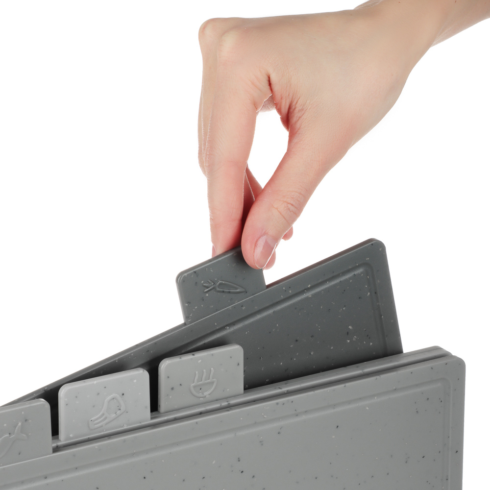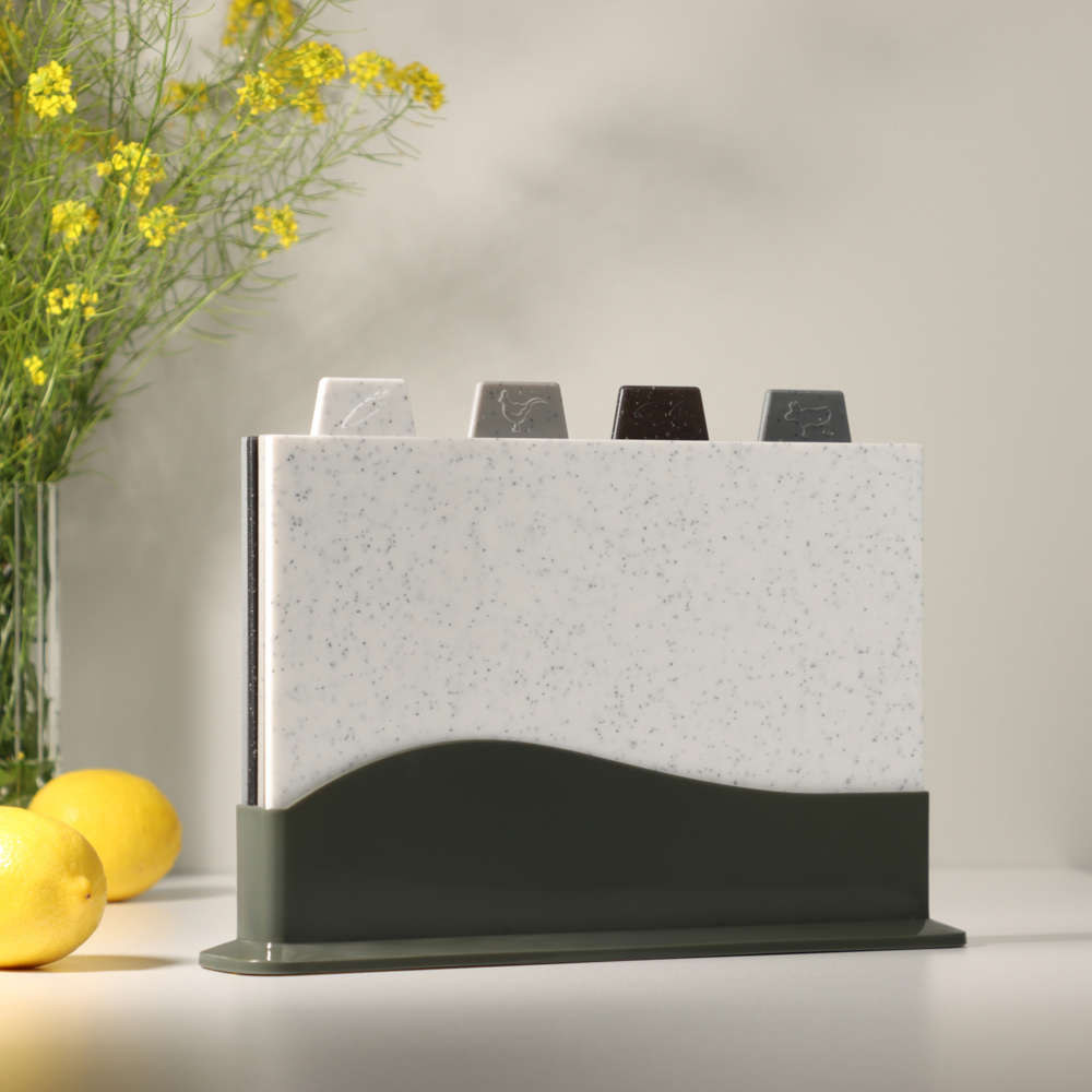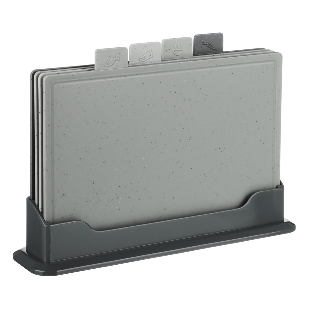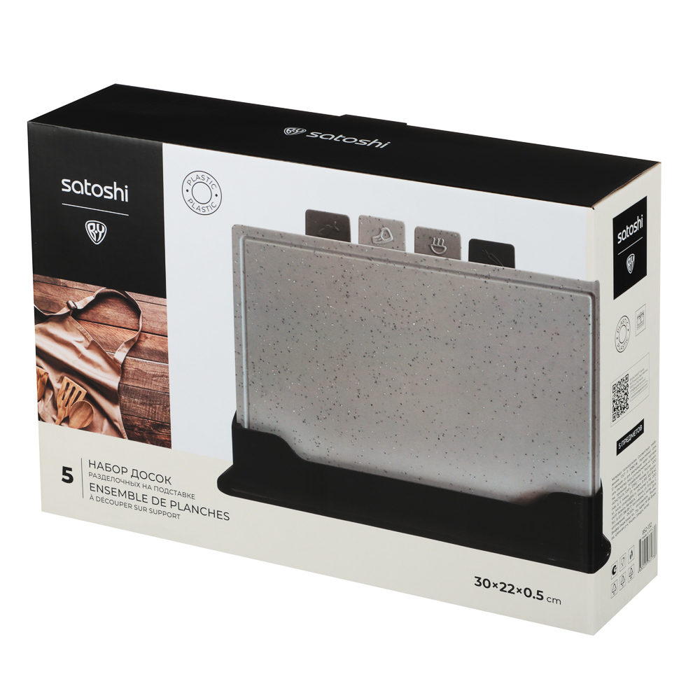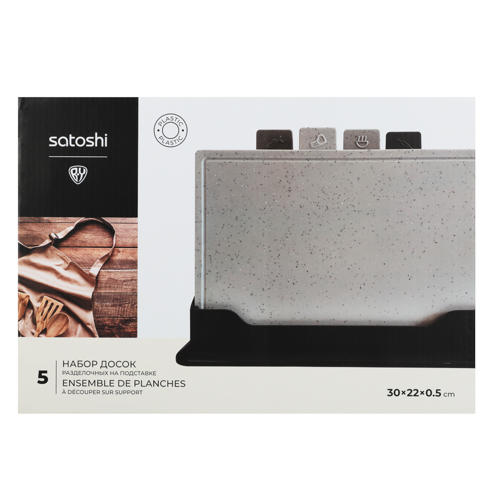 Набор разделочных досок SATOSHI на подставке из 5 предметов - идеальный выбор для вашей кухни! Набор обладает рядом преимуществ, которые сделают процесс приготовления блюд более комфортным и безопасным. Вы сможете легко и быстро нарезать продукты, а также с легкостью поддерживать порядок и чистоту на вашей кухне.Особенности товара:Размер: 30x22 см - оптимальный и удобный для работы с разными видами продуктов;Материал: пищевой пластик - долговечный, гигиеничный и простой в уходе;Подставка: обеспечивает компактное хранение досок и удобство при использовании;Устойчивость к повреждениям и износу: благодаря пластику, разделочные доски прослужат вам долгое время, сохраняя свой первоначальный вид и свойства.
