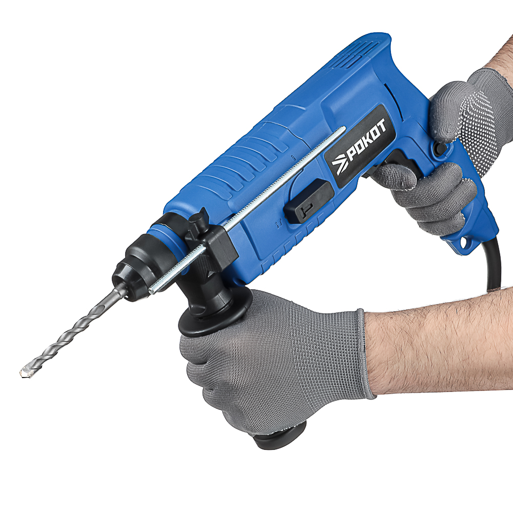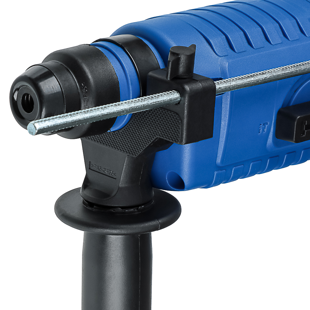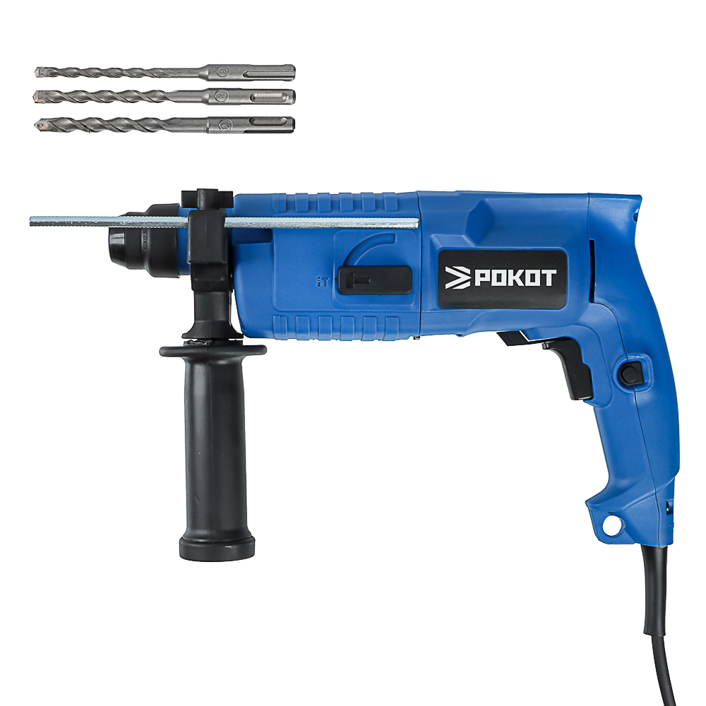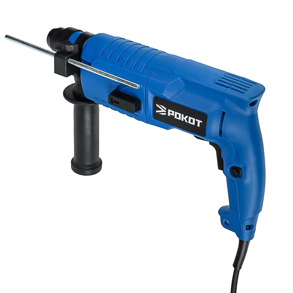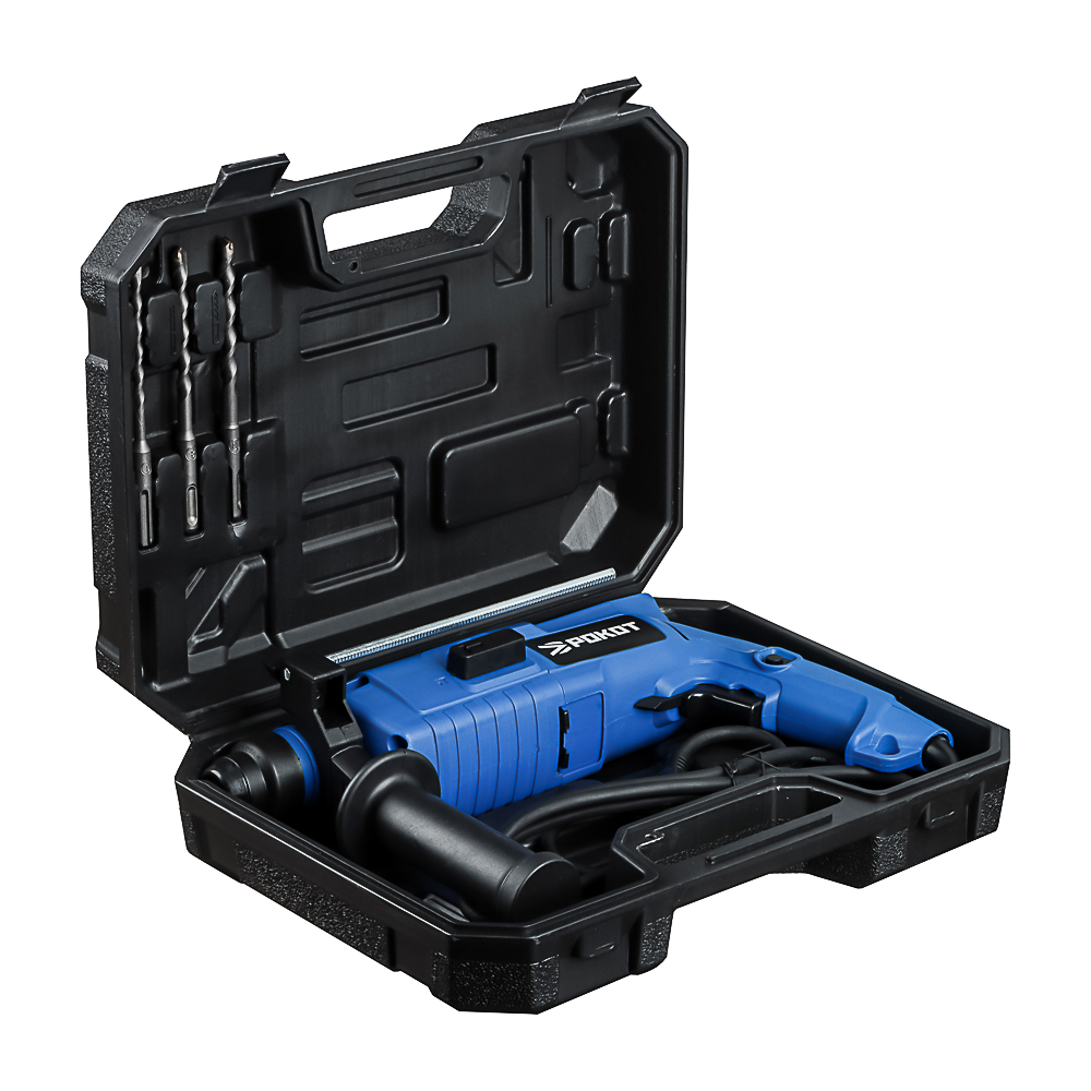РОКОТ представляет электрический перфоратор ПРГ-20/720 – мощное и надежное устройство для выполнения различных строительных и ремонтных работ. Этот перфоратор обладает мощностью в 720 Ватт и имеет два режима работы: сверление и сверление с ударом, что позволяет ему справляться с самыми разнообразными задачами. Энергия удара у данного перфоратора составляет 2.2 Дж, что является довольно высоким показателем, обеспечивающим эффективное сверление даже самых твердых материалов. Скорость вращения перфоратора может достигать 1100 оборотов в минуту, а ударов – до 5100 в минуту. Это гарантирует высокую производительность и позволяет выполнить работу быстро и качественно. Для удобства использования в комплекте с перфоратором поставляются три бура разных размеров: 6x150 мм, 8x150 мм и 10x150 мм. Перфоратор оснащен патроном типа SDS-plus, что облегчает замену буров и делает процесс работы более комфортным.