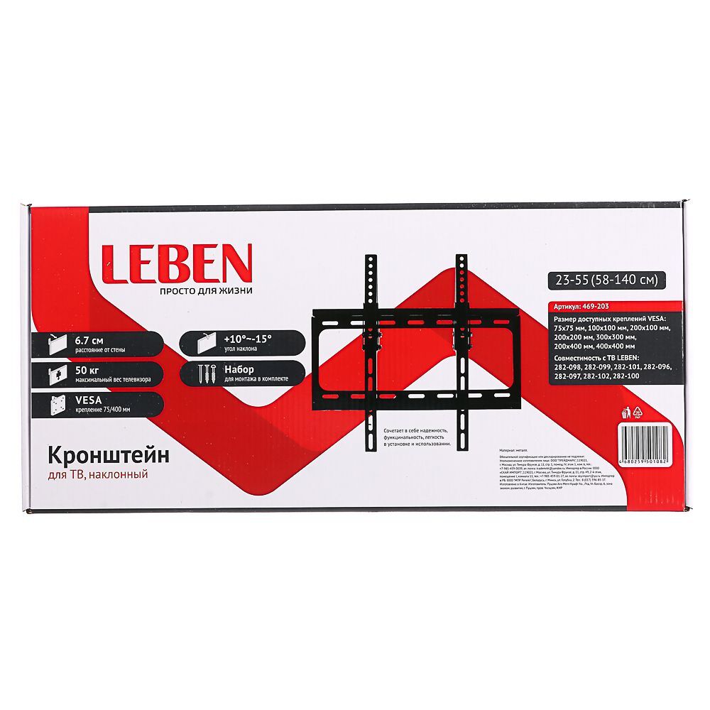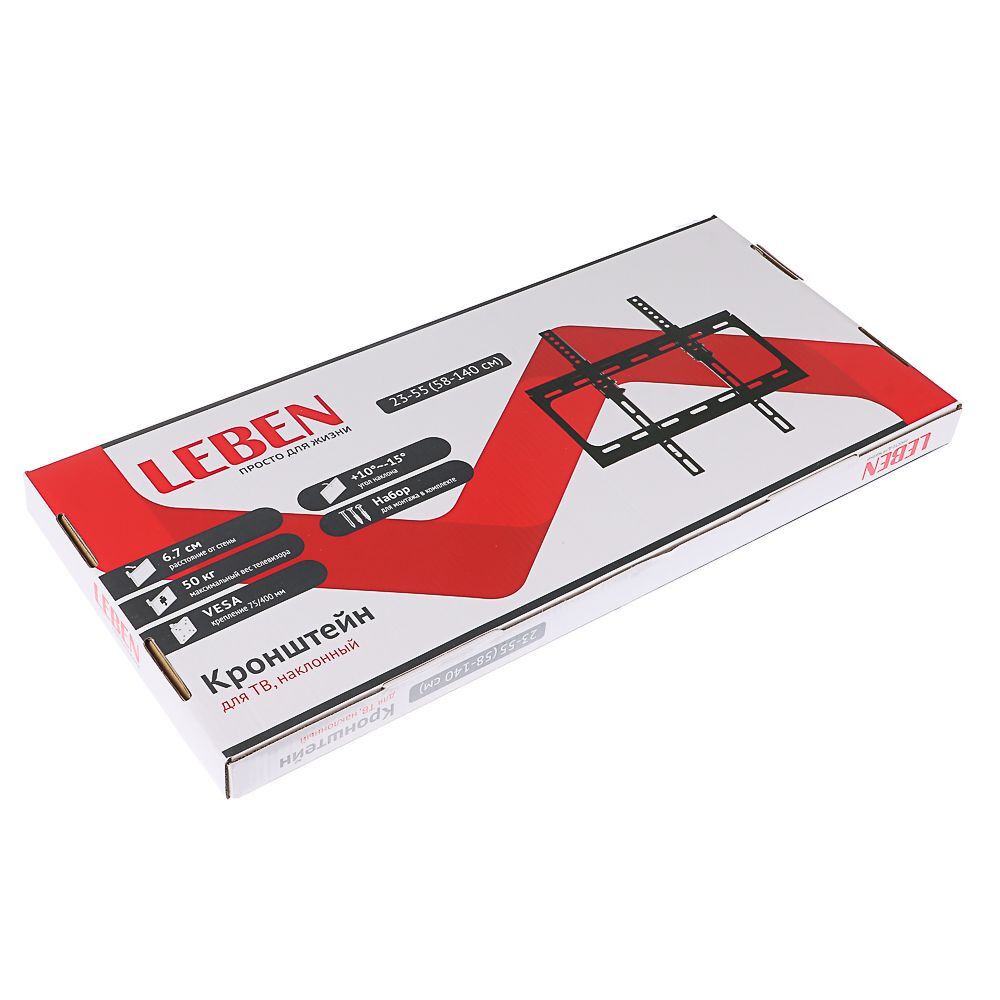 Наклонный кронштейн Leben для телевизоров весом до 50 кг выполнен из стали. Допустимый размер экрана — 23-55”. Изделие позволяет менять положение телевизора в вертикальной плоскости. Вы сможете легко опустить ТВ или наоборот поднять его, чтобы обеспечить комфортный просмотр фильма всем присутствующим. Угол наклона — +/-15°.