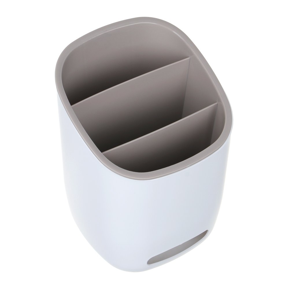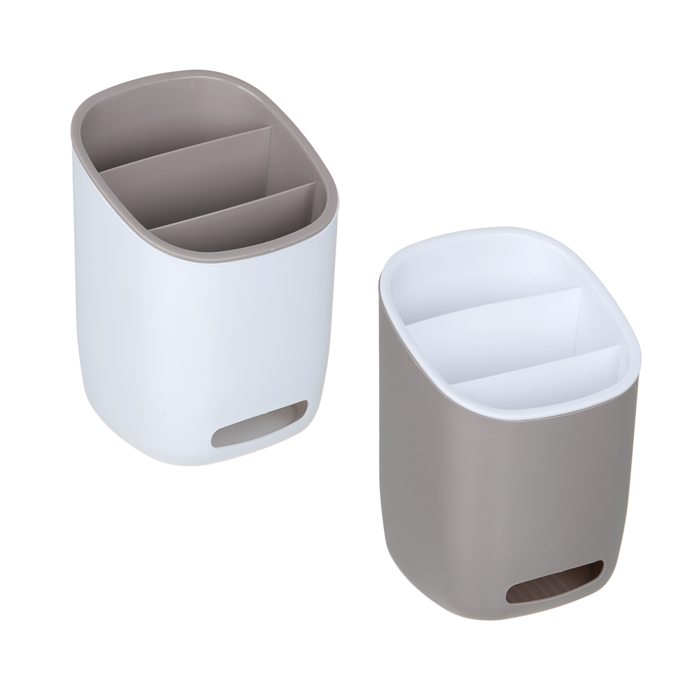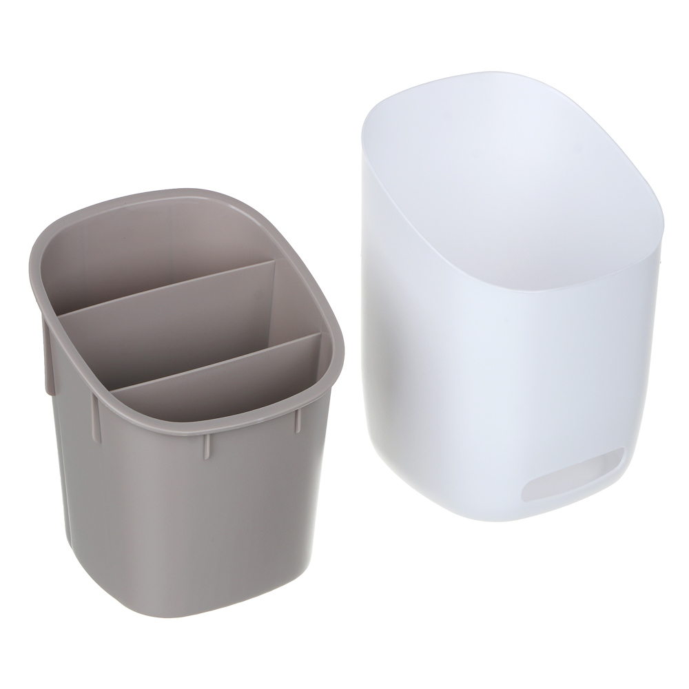 Подставка для сушки столовых приборов VETTA – это компактный стакан с тремя отсеками, который займет минимум места на кухне и поможет организовать порядок. Изделие из пластика имеет дренажные отверстия для стока воды и поддон, поэтому столовые приборы будут быстро высыхать и оставаться сухими во время нахождения в подставке. Изделие устойчивое, легко моется.