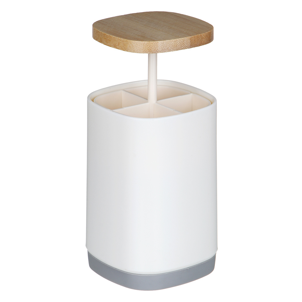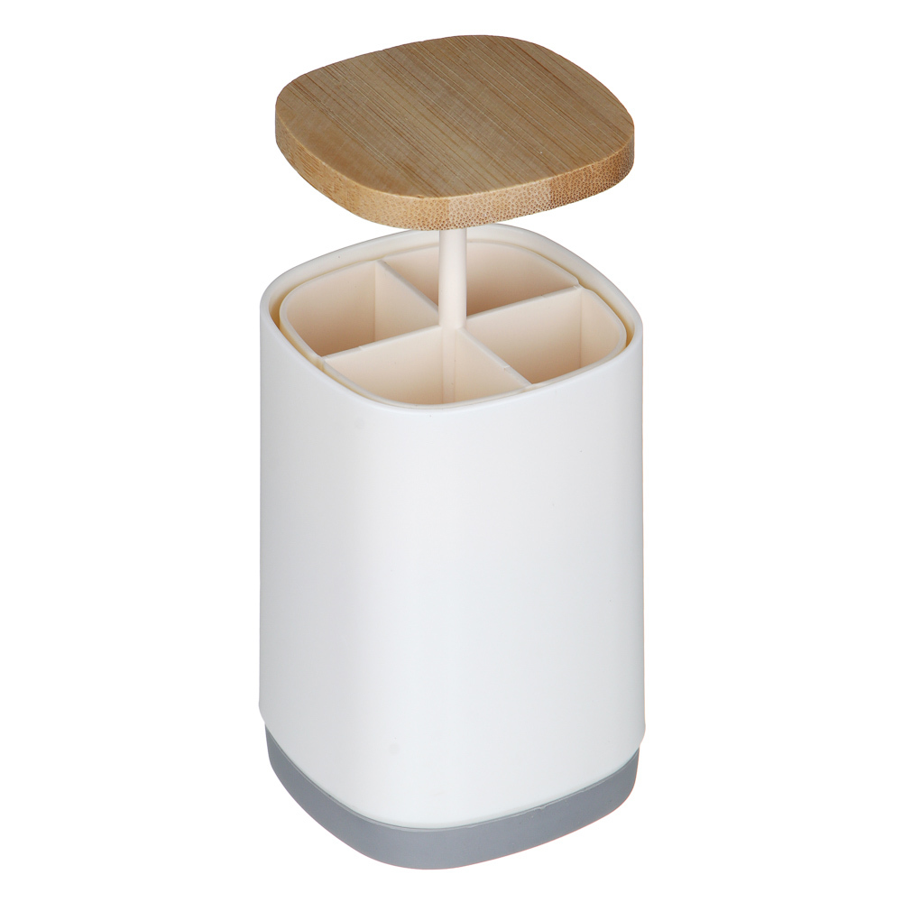 Подставка, органайзер для хранения зубочисток и ватных палочек 7,5х7,5х11 см - это идеальное решение для вашей кухни или ванной комнаты. Контейнер для ватных палочек и зубочисток имеет компактный размер и крышку, что позволяет сэкономить место и защитить содержимое от влаги и пыли. Кроме того, подставка выполнена в современном стиле, что позволяет ей идеально дополнить интерьер вашего дома. Баночка открывается одним нажатием на крышку, что делает ее использование максимально удобным. Изготовлена из прочного пластика ABS, поэтому изделие износостойкое и легкое.