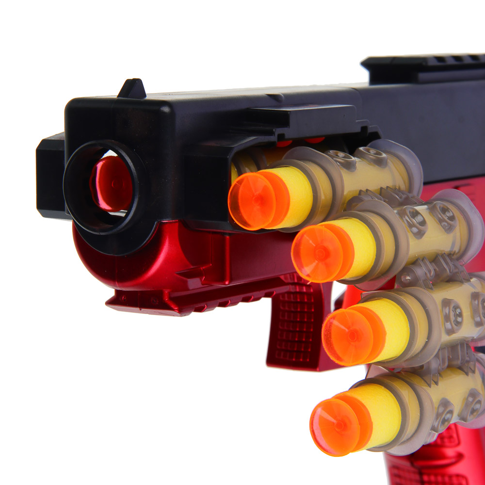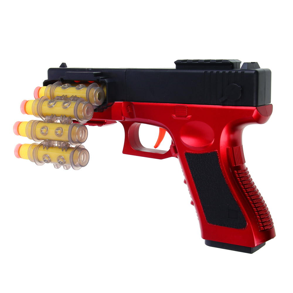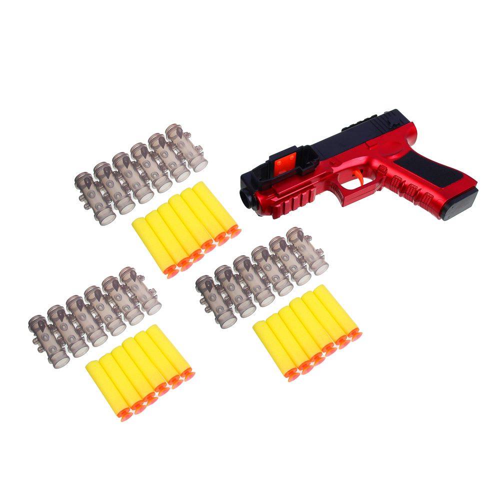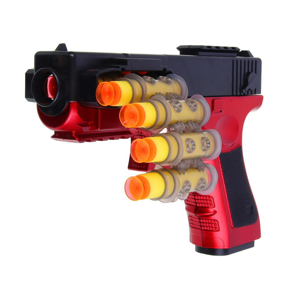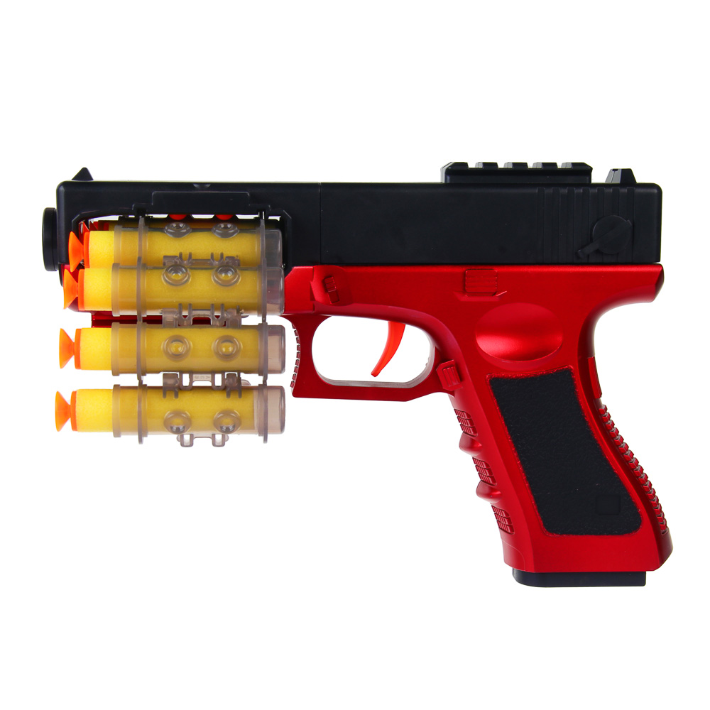 Пистолет с поролоновыми патронами и обоймой "Быстрый выстрел" - это бластер, который создан для тренировки меткости, реакции, внимания и сосредоточенности самых маленьких игроков. Модель тщательно проработана и выполнена из высокопрочного пластика в стильном цвете и дизайне. Автомат стреляет мягкими патронами, которые не нанесут травм малышу и безопасны для интерьера квартиры.
