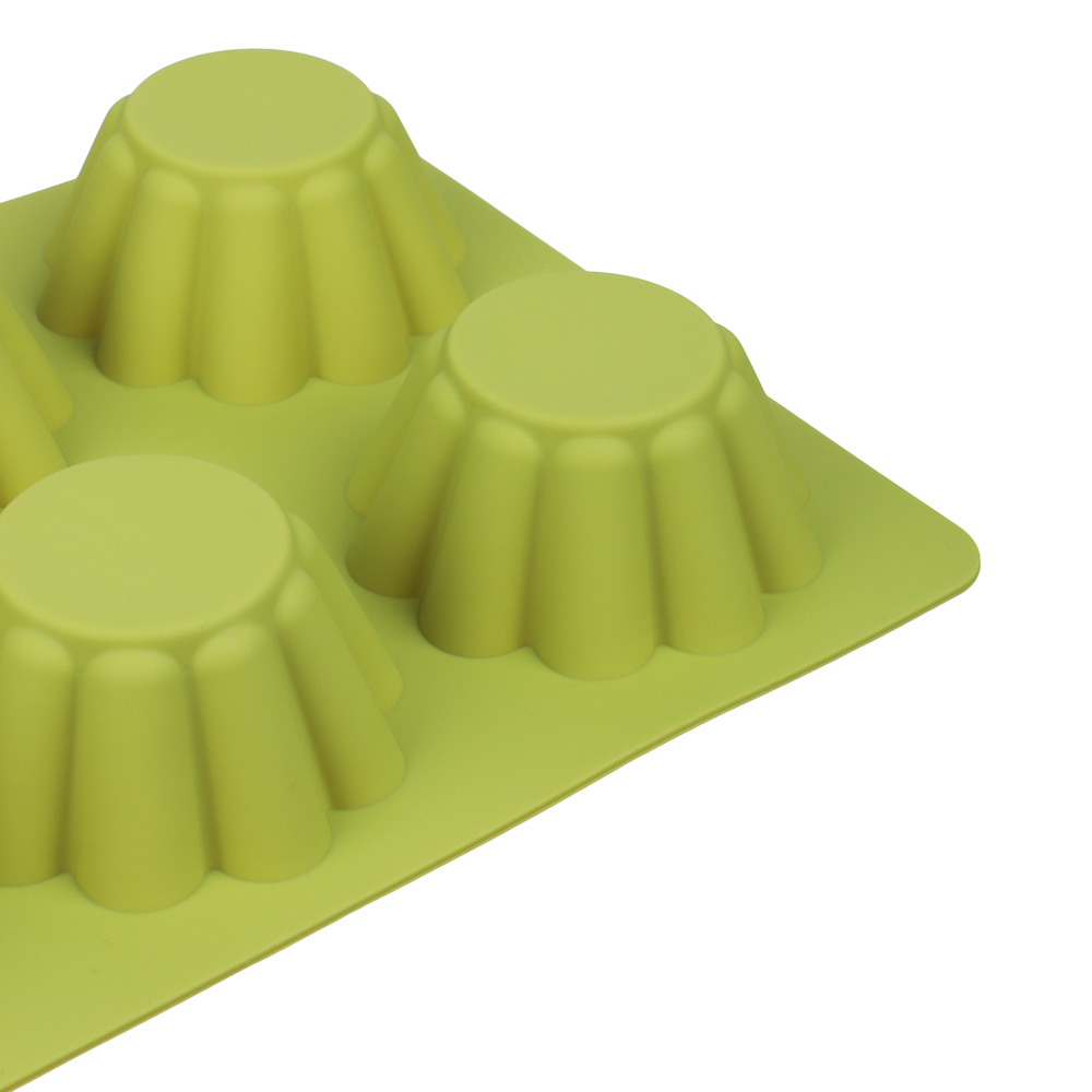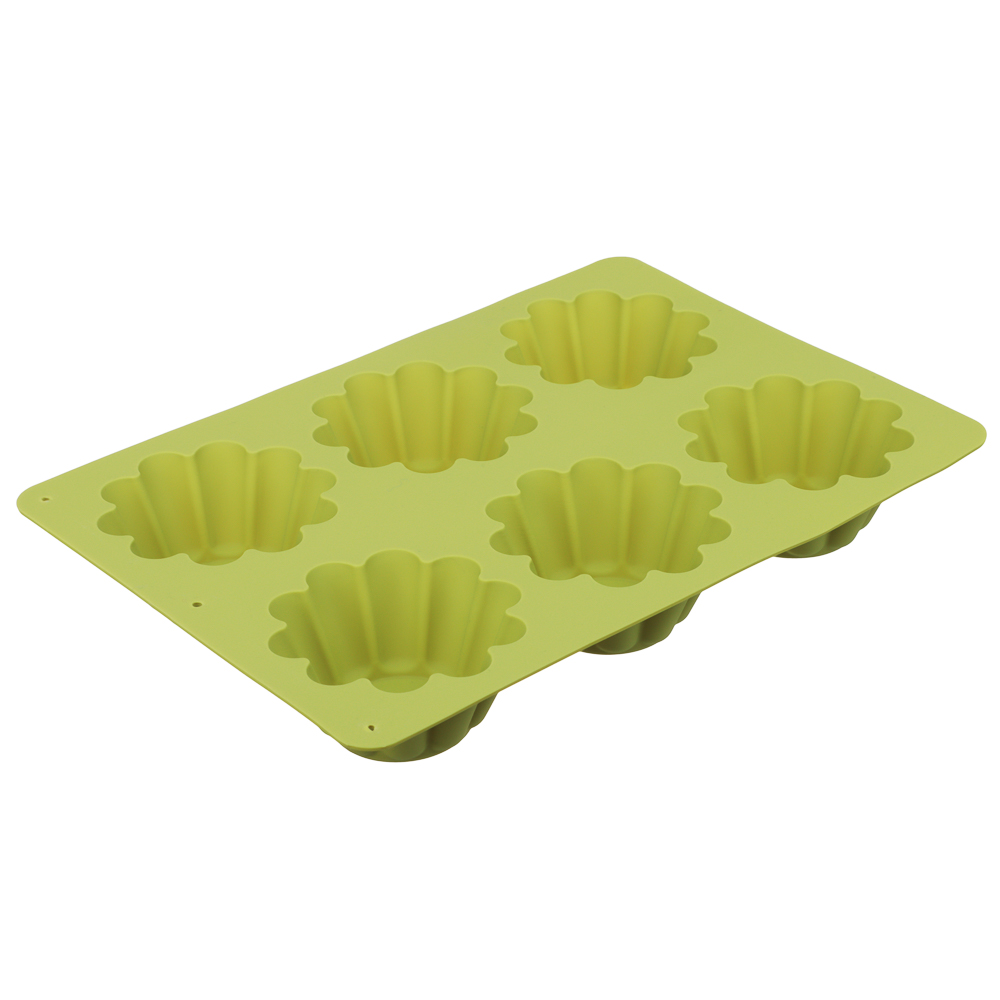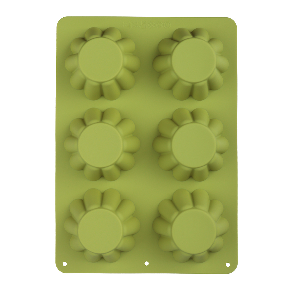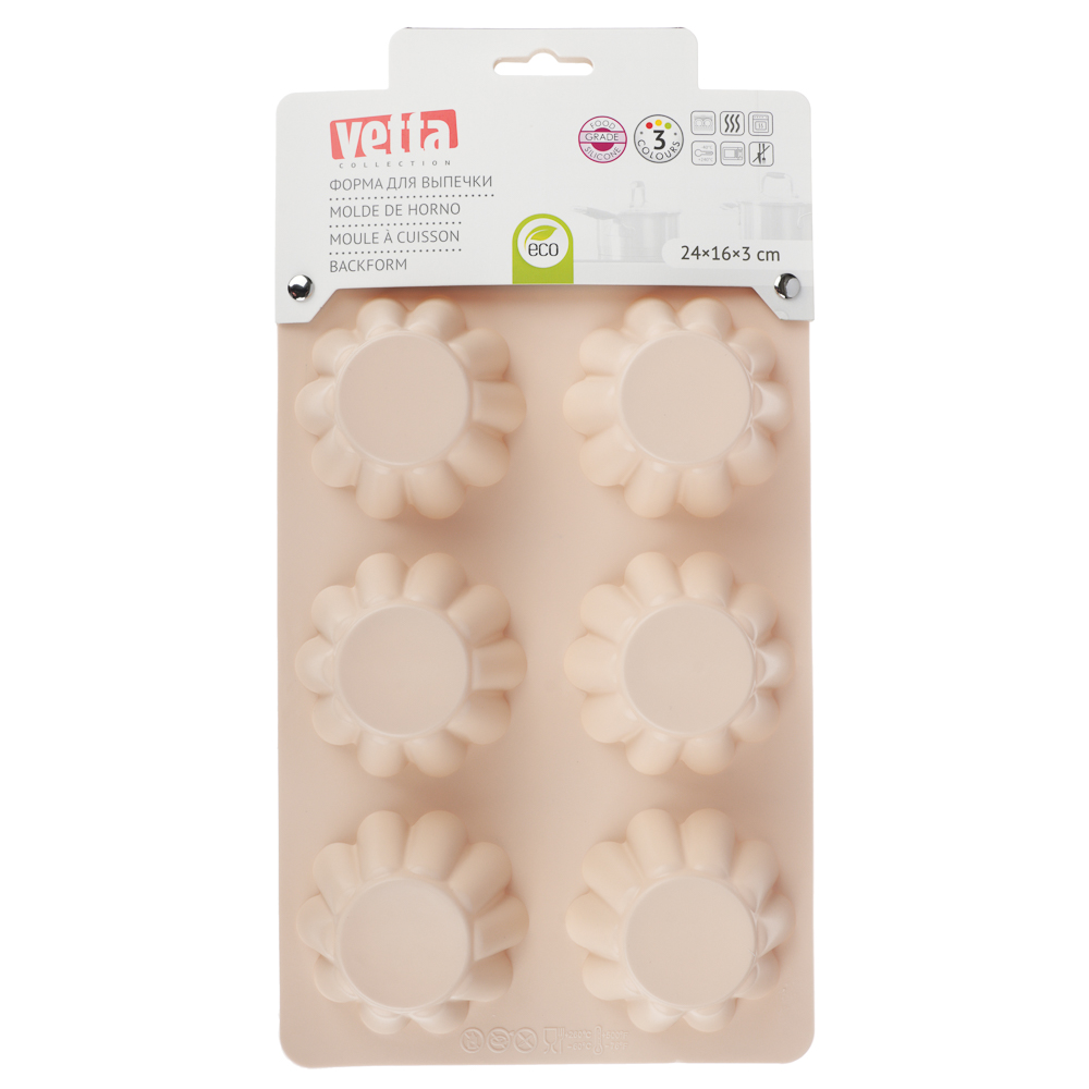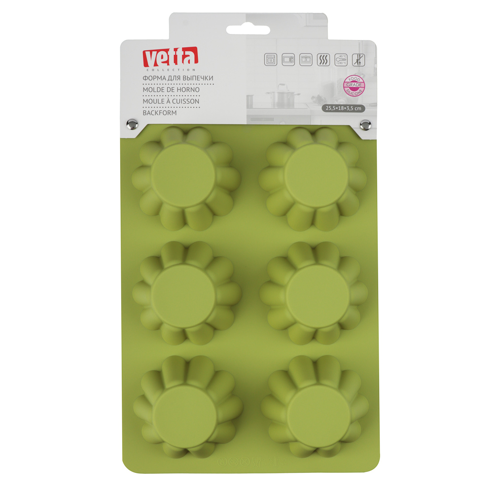Форма для выпечки размером 25,5х18х3,5 см, разделенная на 6 круглых ячеек с ровным гладким дном и гофрированной стенкой, предназначена для выпечки изделий из теста в духовых шкафах. Форма изготовлена из высококачественного жаропрочного силикона. Силиконовая форма отличается стойкостью к высоким температурам, а также обладает антипригарными свойствами, за счет чего выпечка легко вынимается и не пригорает. Форма не прихотлива, ее легко мыть и удобно хранить.