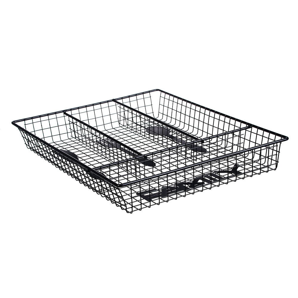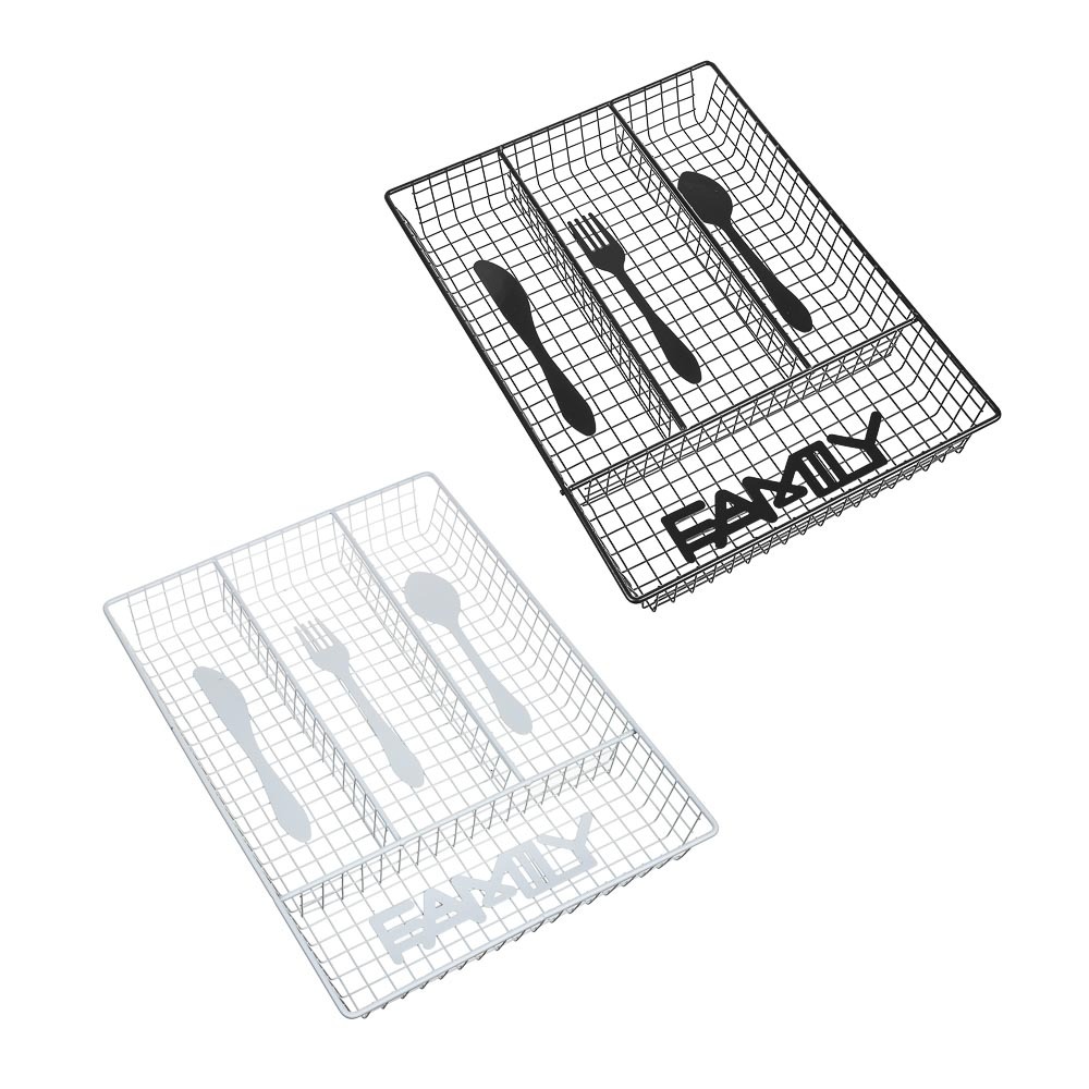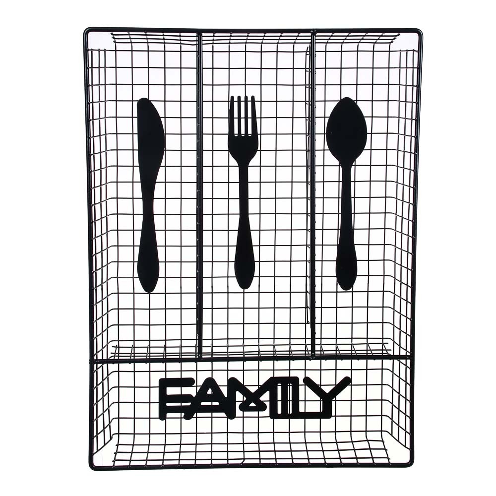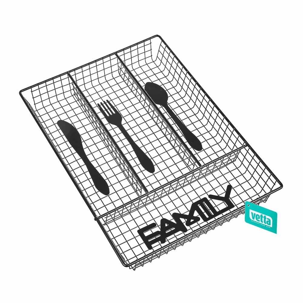 Корзинка для столовых приборов VETTA «Кухня» предназначена для хранения столовых приборов и содержит 4 отсека: для ложек, вилок, ножей и других предметов и аксессуаров, например, овощечистки, ножниц и точилки для ножей. Имеет универсальный размер и подойдет практически для любого выдвижного кухонного ящика. Изготовлена из металла, имеет приятный тематический дизайн и обеспечит порядок на кухне. 2 классических цвета на выбор: черный и белый.