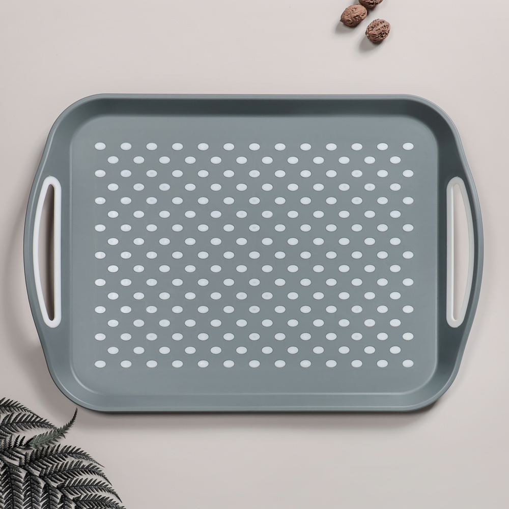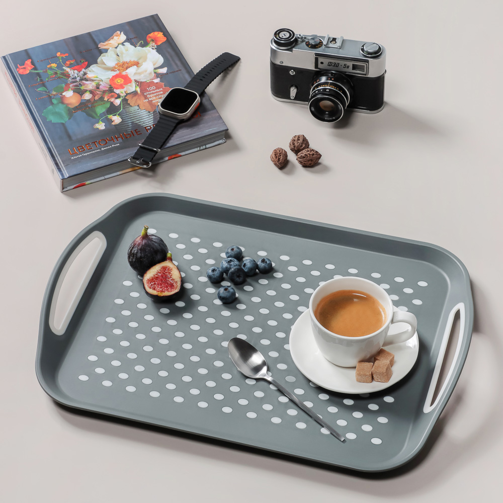 Прямоугольный антискользящий поднос «Мокко» 45,5х32х4,5 см пригодится для повседневного использования, а также во время праздничного застолья. Изготовлен из прочного пластика, не прогибается от веса посуды и имеет удобные надежные ручки. Благодаря антискользящей поверхности посуда не скользит во время перемещения, что минимизирует вероятность опрокидывания. Ускорит процесс сервировки стола, а также поможет быстро убрать грязную посуду.