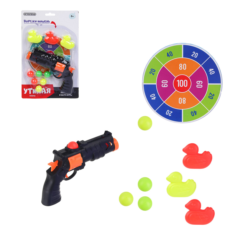 Набор игровой пистолет с пульками и уточками ИГРОЛЕНД представляет собой замечательную игрушку, которая обеспечит вашему ребенку массу увлекательных моментов. Изготовленный из прочного полипропилена, этот пистолет сочетает в себе безопасность и надежность. Размеры игрушки составляют 17х27х3 см, что делает её удобной для детских рук. В наборе 6 шариков и 3 уточки, что обеспечивает разнообразие игровых сценариев и возможностей для игры с друзьями. Игра с пистолетом способствует развитию меткости, координации движений и улучшает реакцию. Возможность стрелять в мишени-уточки и проводить соревнования делает игрушку интересной и веселой.Набор игровой ИГРОЛЕНД – отличный выбор для развлечений и активных игр вашего ребенка. Эта игрушка не только украсит досуг, но и поможет развить моторику и улучшить координацию движений в игровом процессе.