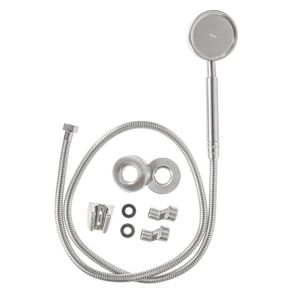 Однорычажный смеситель в ванную с длинным изливом устанавливается на стену ванной с помощью горизонтальных креплений. Керамический картридж 40 мм позволяет регулировать напор воды одной рукой мягко и плавно, его конструкция обеспечивает прочность соединений и долговечность работы. Пластины из металлокерамики, отшлифованные ультразвуком, плотно прилегают друг к другу, механизм не содержит резиновых прокладок. Плоский гусак поворачивается в любую сторону, его длина составляет 35 см, что позволяет использовать его и для раковины, и для умывальника. В комплект включены: смеситель, комплект креплений с отражателями, шланг с лейкой и держателем. Смеситель изготовлен из прочной нержавеющей стали, устойчивой к коррозии. Ванная комната – это место, где мы проводим время каждый день, поэтому ее дизайн и комфорт очень важен. Сантехника стального цвета прекрасно вписывается в любой интерьер. Отличие этой модели – покрытие сатин, шероховатое с легким блеском.