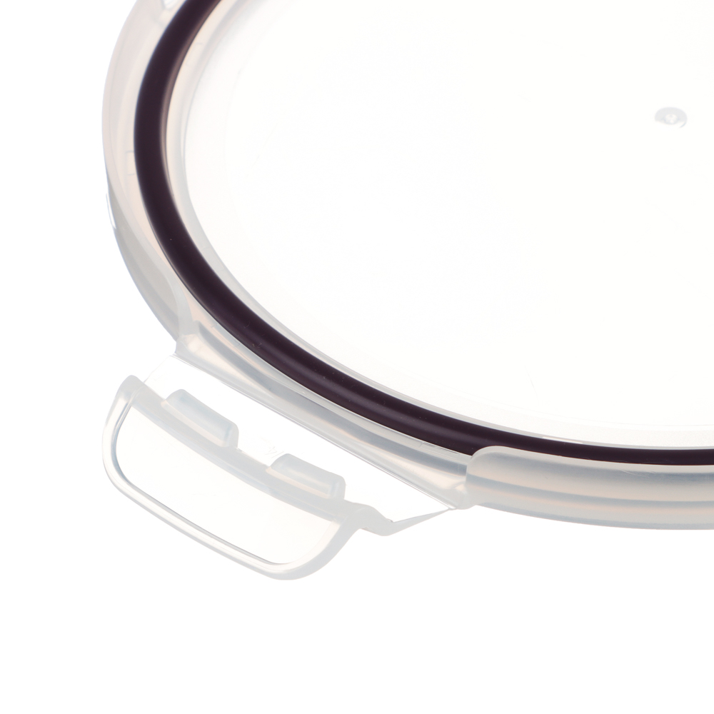 Контейнер для хранения продуктов изготовлен из жаропрочного стекла, крышка из пищевого пластика. Для более надежного крепления и сохранения герметичности на крышке имеются удобные защелки.