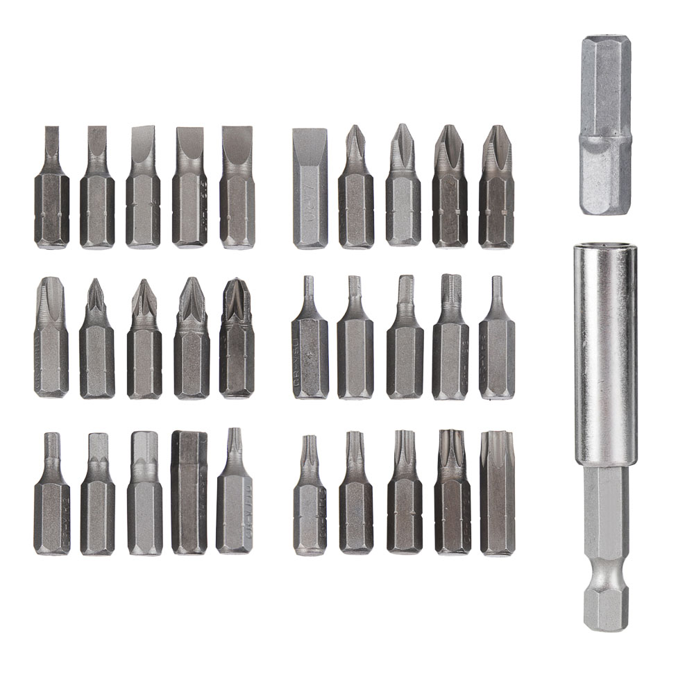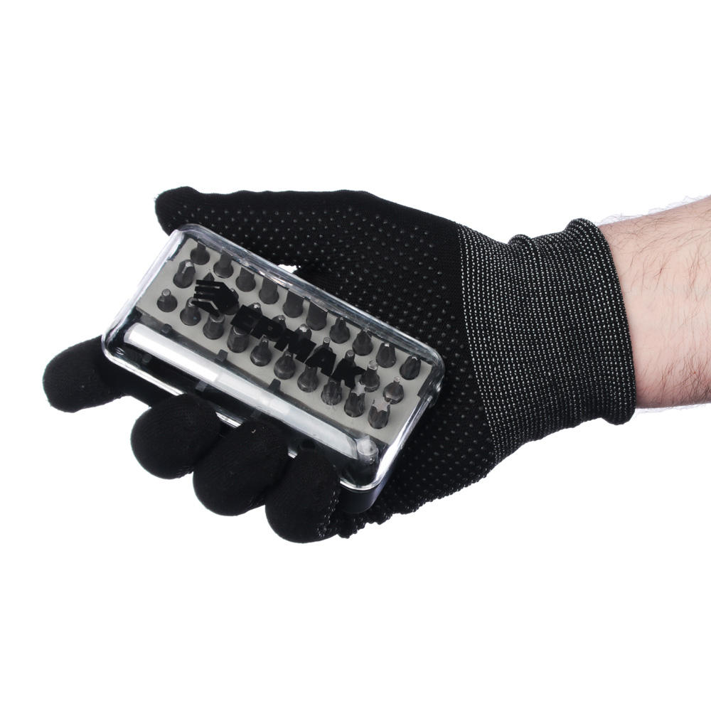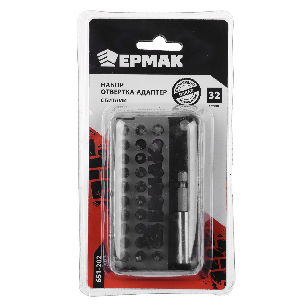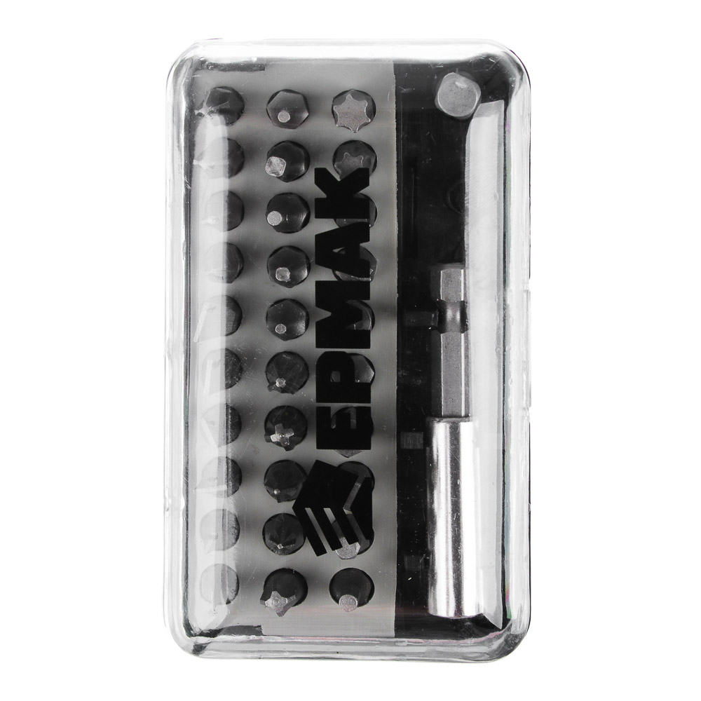 Набор отвертка-адаптер с битами ЕРМАК в стильном компактном кейсе из АБС-пластика состоит из 32 предметов, включая отвертку, адаптер и 30 бит разных типоразмеров: Torx, прямой, шестигранный, крестообразный шлиц. Все элементы выполнены из высококачественной прочной стали, обладают высокой степенью износостойкости и устойчивостью к деформации. Набор пригодится как домашнему мастеру, так и профессионалу. Может использоваться для бытовых работ по ремонту и монтажу, а также понадобится в автомобиле, мастерской или в гараже.Состав набора: Прямой шлиц: SL3, SL4, SL5, SL5.5, SL6, SL7; Крестовой шлиц: PH0, PH1, PH2, PH2, PH3; Шестигранный шлиц: H2, H3, H4, H5, H6; Шлиц TORX: T10, T15, T20, T25, T30, T40; Квадратный шлиц: S0, S1, S2, S3; Шлиц POZI: PZ0, PZ1, PZ2, PZ3; Магнитный держатель для бит 60 мм - 1 шт.; Адаптер - 1 шт.