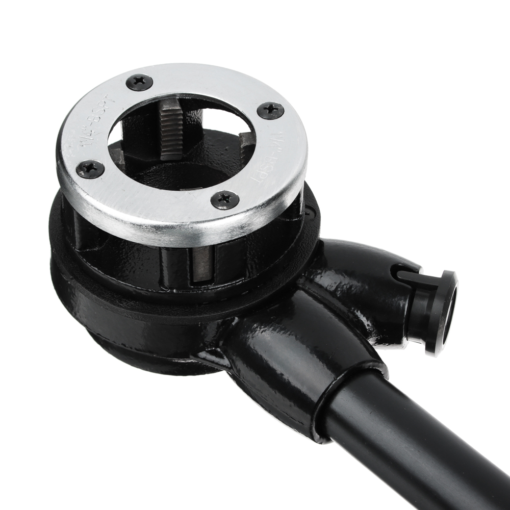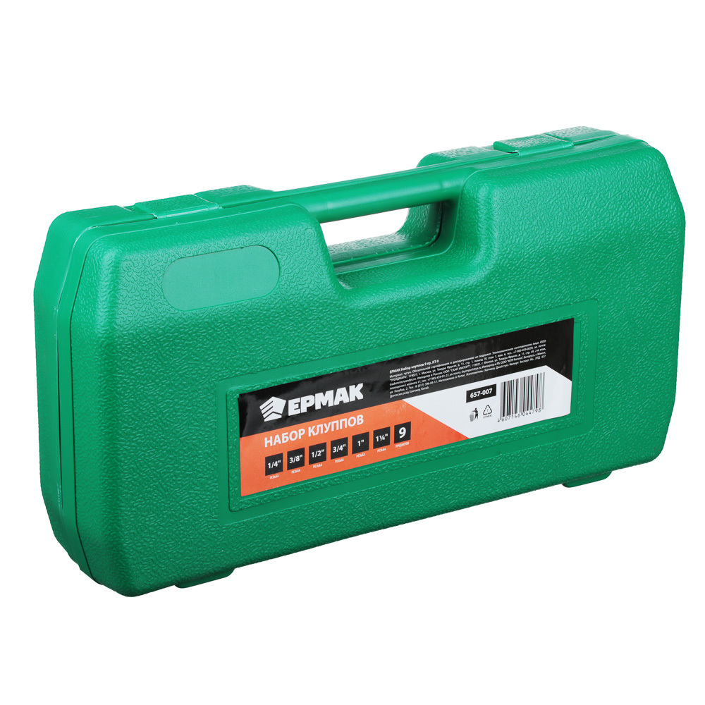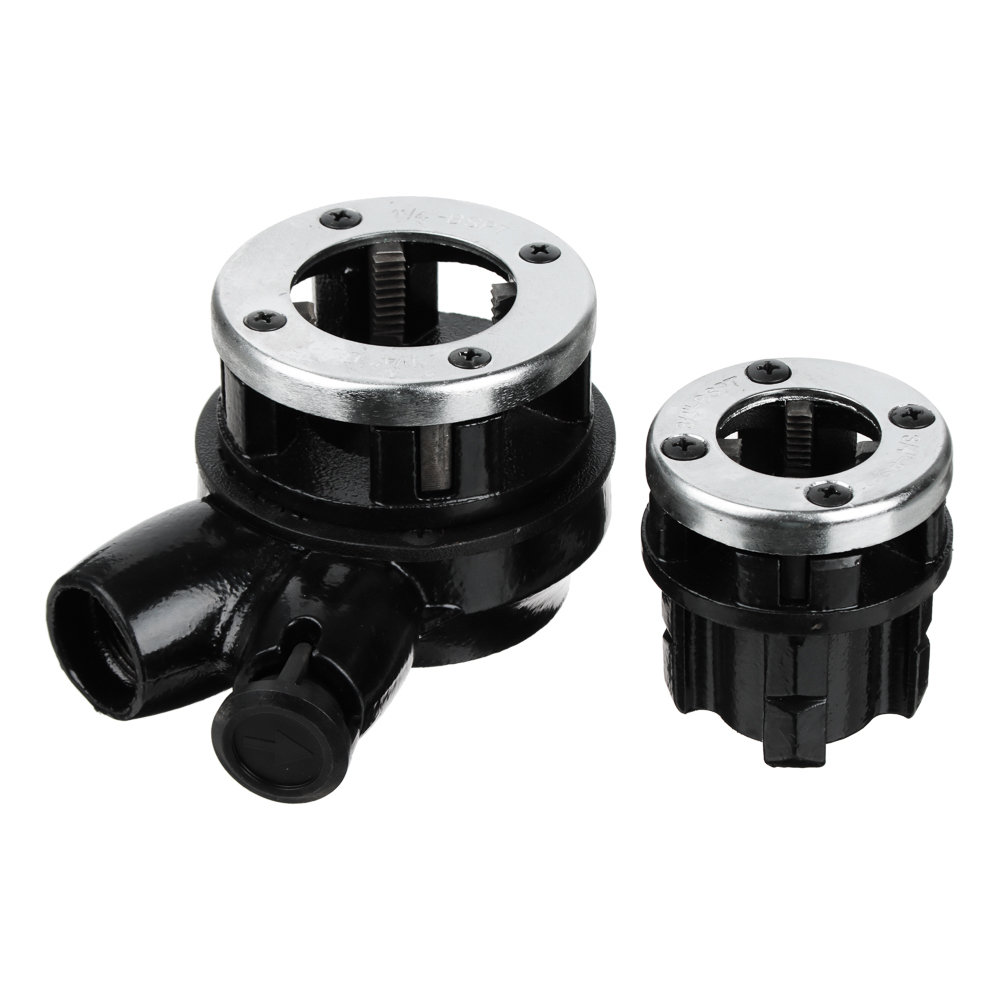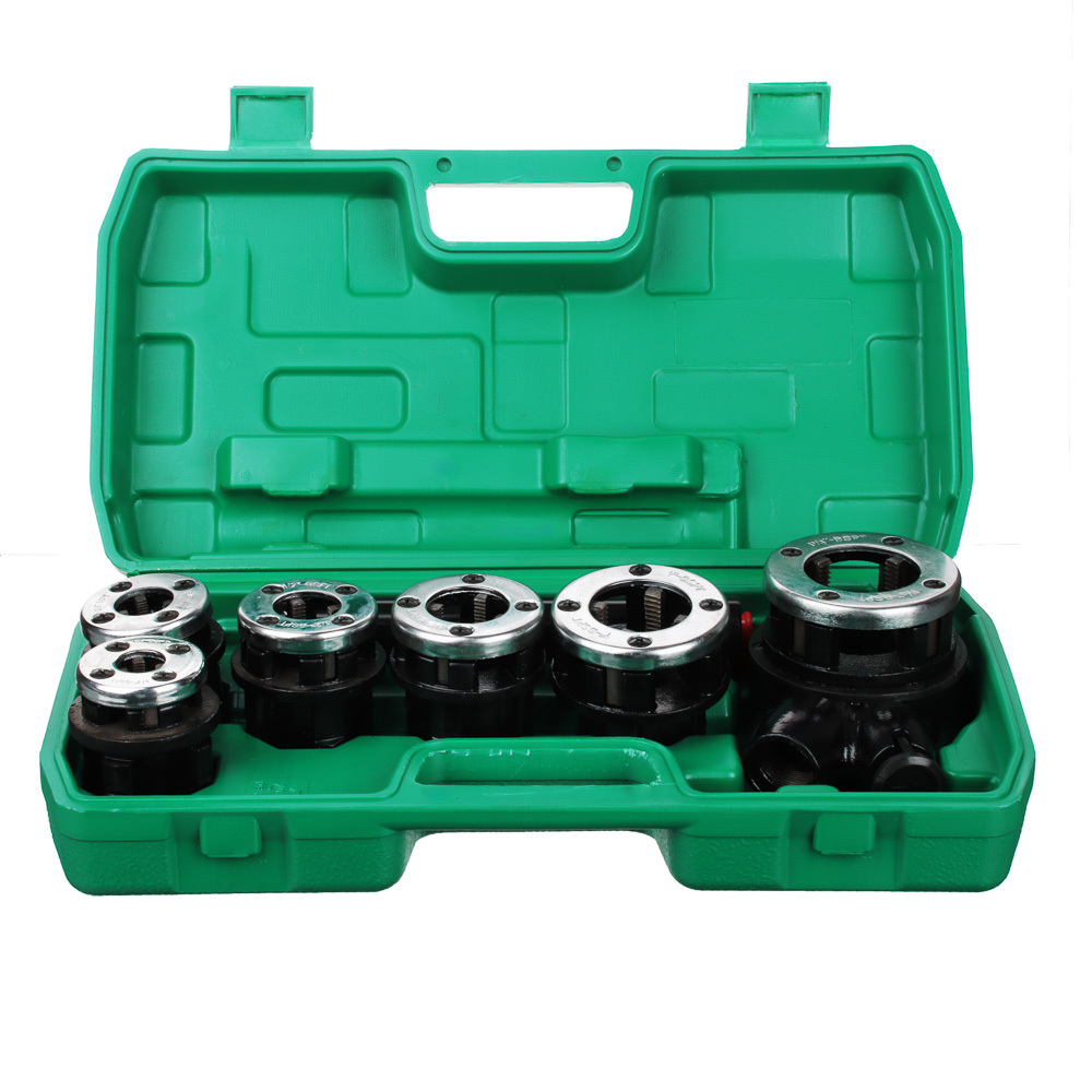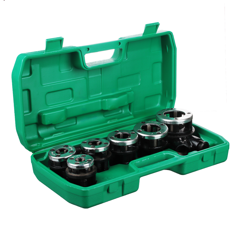 Элементы этого набора используются в качестве приспособления для нарезания внешней резьбы на трубах разного диаметра.В состав набора входят: трещотка с ручкой, удлинитель ручки (для увеличения длины рычага), пластиковый кейс и клуппы 1/4?, 3/8?, 1/2?, 3/4?, 1?, 1 1/4?.