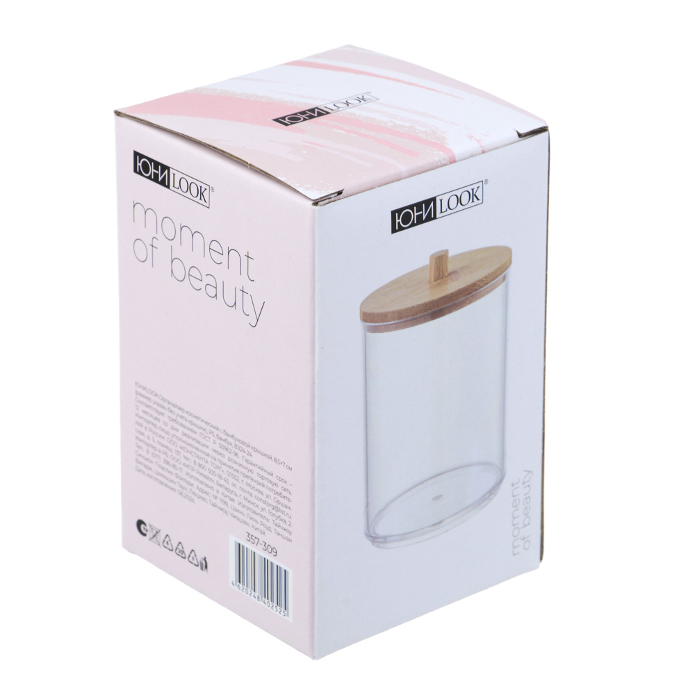 Удобный косметический органайзер с крышкой из натурального бамбука ЮНИLOOK — стильное и функциональное решение для хранения ваших косметических принадлежностей. Компактные размеры 8,5x7 см позволяют разместить его на любом туалетном столике или полке, не занимая много места. Корпус выполнен из прочного прозрачного полистирола, что обеспечивает долгий срок службы и простоту ухода. Бамбуковая крышка добавляет экологичный и естественный акцент, делая органайзер не только практичным, но и стильным элементом интерьера. Идеален для хранения кистей, спонжей и других мелочей!