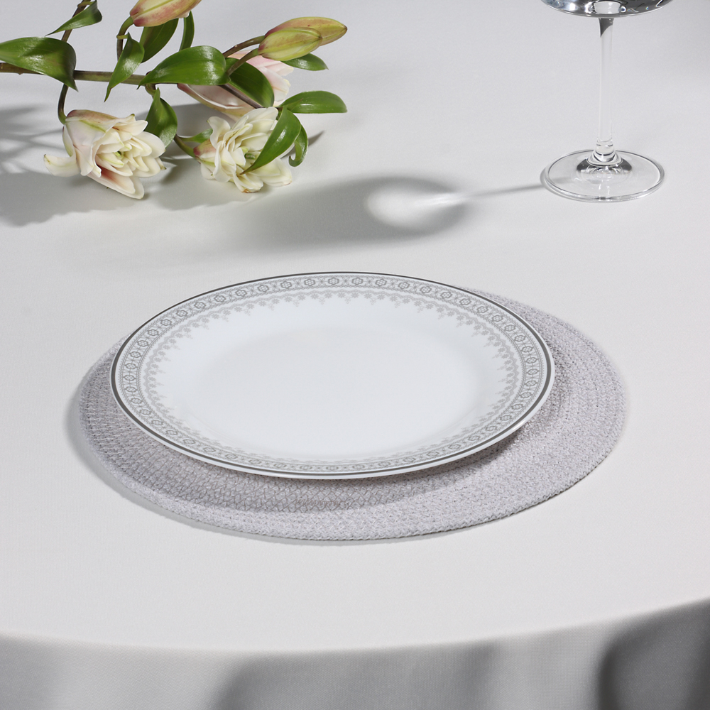 Добавьте элегантности вашему столу с подстановочной тарелкой MILLIMI Минта. Изготовленная из прочного опалового стекла, эта тарелка диаметром 24 см не только устойчива к повреждениям, но и украшена изысканным орнаментом по краю. Она идеально подходит для повседневного использования и праздников, делая каждую сервировку особенной. Превратите ваши трапезы в эстетическое наслаждение с этой стильной тарелкой.