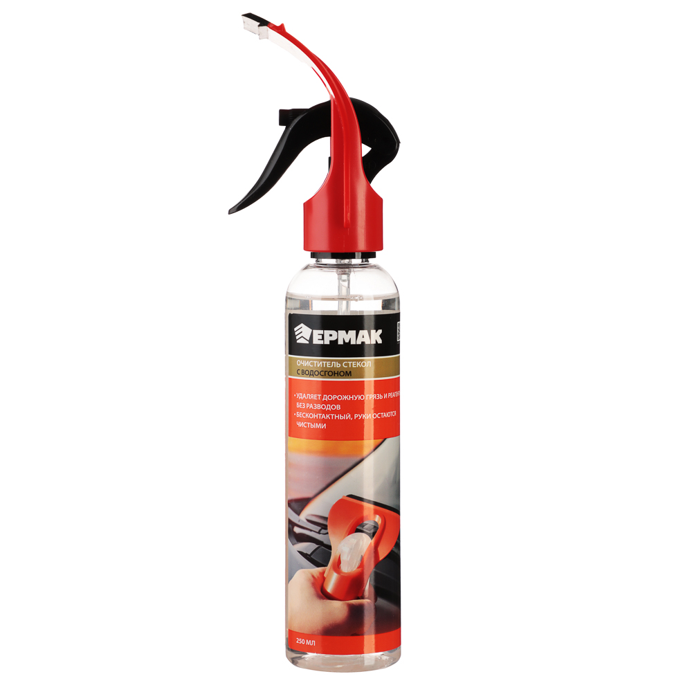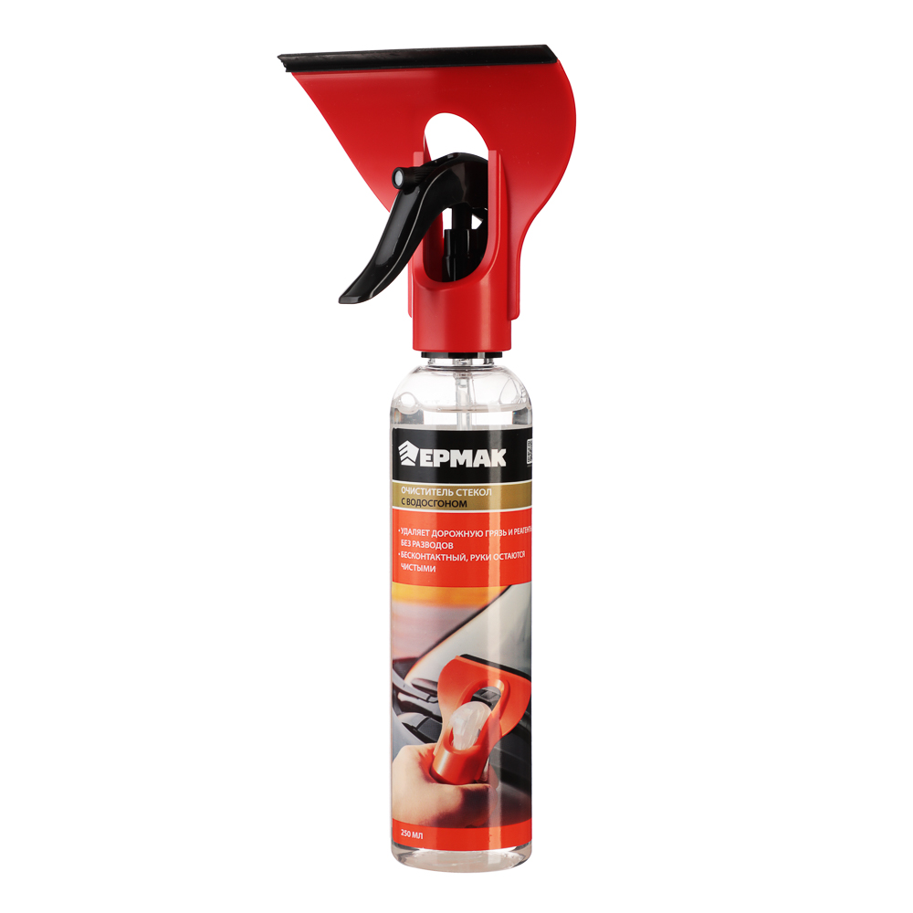 Очиститель стекол бесконтактный ЕРМАК с водосгоном всесезонный (триггер-водосгон) объемом 250 мл – это эффективное средство, которое без труда устранит дорожную грязь, пыль и реагенты со стекол транспортного средства. Имеет оригинальный формат 2 в 1. Спрей наносится путем нажатия на дозатор, а водосгон плотно прилегает к стеклу, очищая его поверхность до идеальной прозрачности. При этом руки остаются чистыми. Компактное средство можно возить с собой в автомобиле.