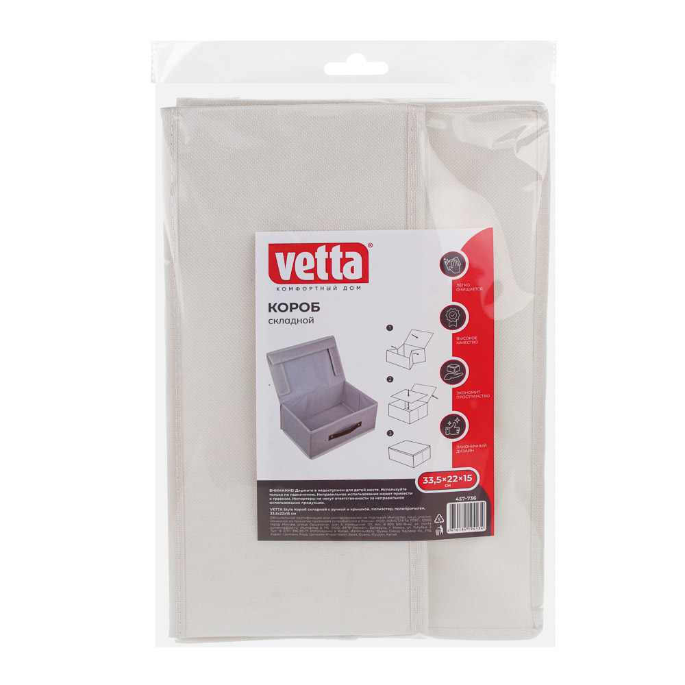 Короб для хранения VETTA Style размером 33,5х22х15 см – это компактный и одновременно вместительный кофр для одежды, который можно также использовать для хранения хозяйственных принадлежностей и игрушек. Имеет жесткие стенки, отлично держит форму. Оснащен надежной крышкой, которая защищает содержимое от пыли, поэтому короб можно хранить в любом месте в доме: внутри шкафа для одежды, на полке, на полу и даже под кроватью. Изделие из полиэстера не теряет вид и не выцветает, имеет оригинальный дизайн, который впишется в интерьер комнаты.