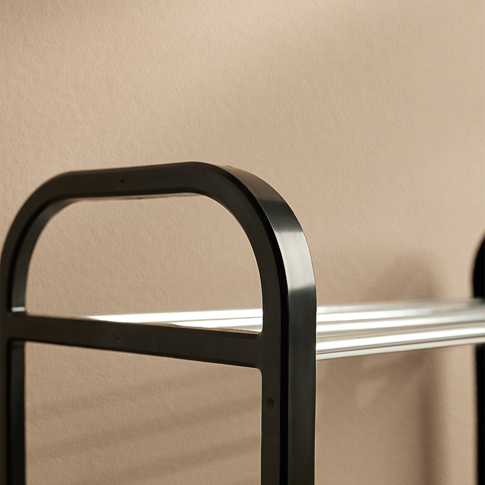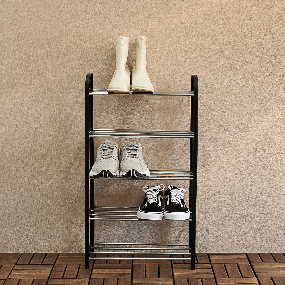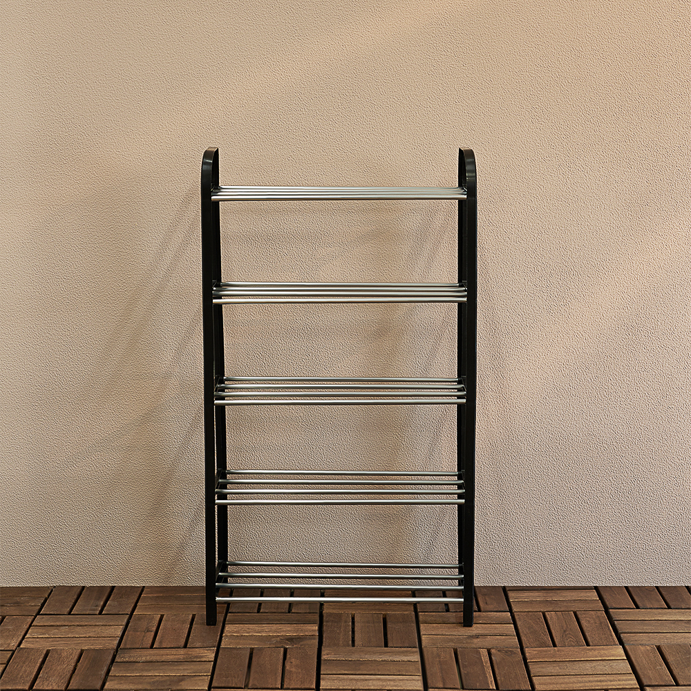 Этажерка для обуви VETTA имеет каркас и прутья из металла, что обеспечивает прочность и устойчивость конструкции. Приспособление является не только отличным местом расположения повседневных вещей, но и мебелью, где можно хранить обувь в межсезонье, когда определённые модели вам временно не нужны. Пяти широких полок достаточно, чтобы разместить туфли и сапоги всех членов семьи. Теперь чистота и порядок — визитные карточки вашего жилища.