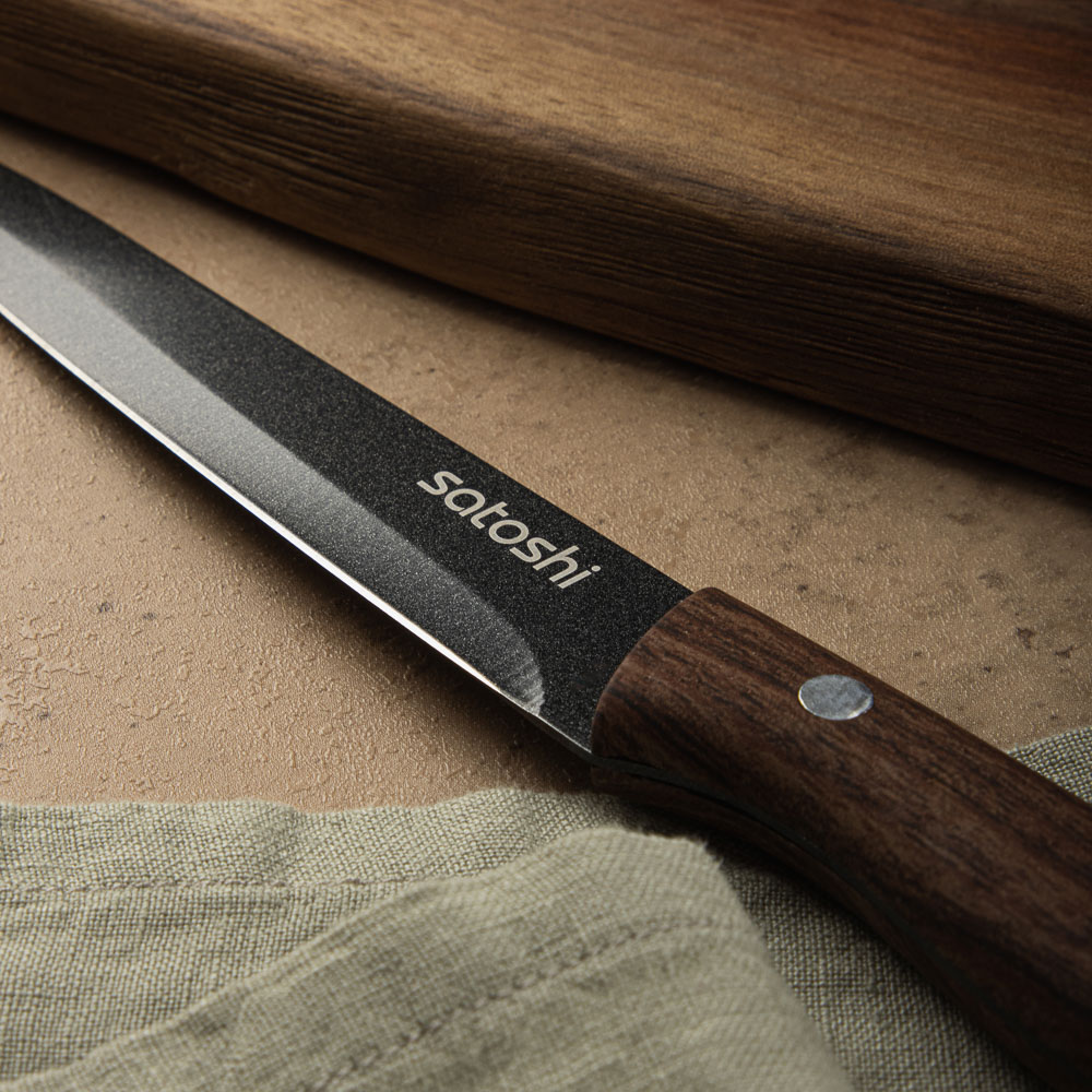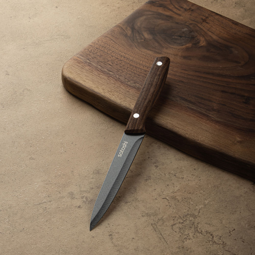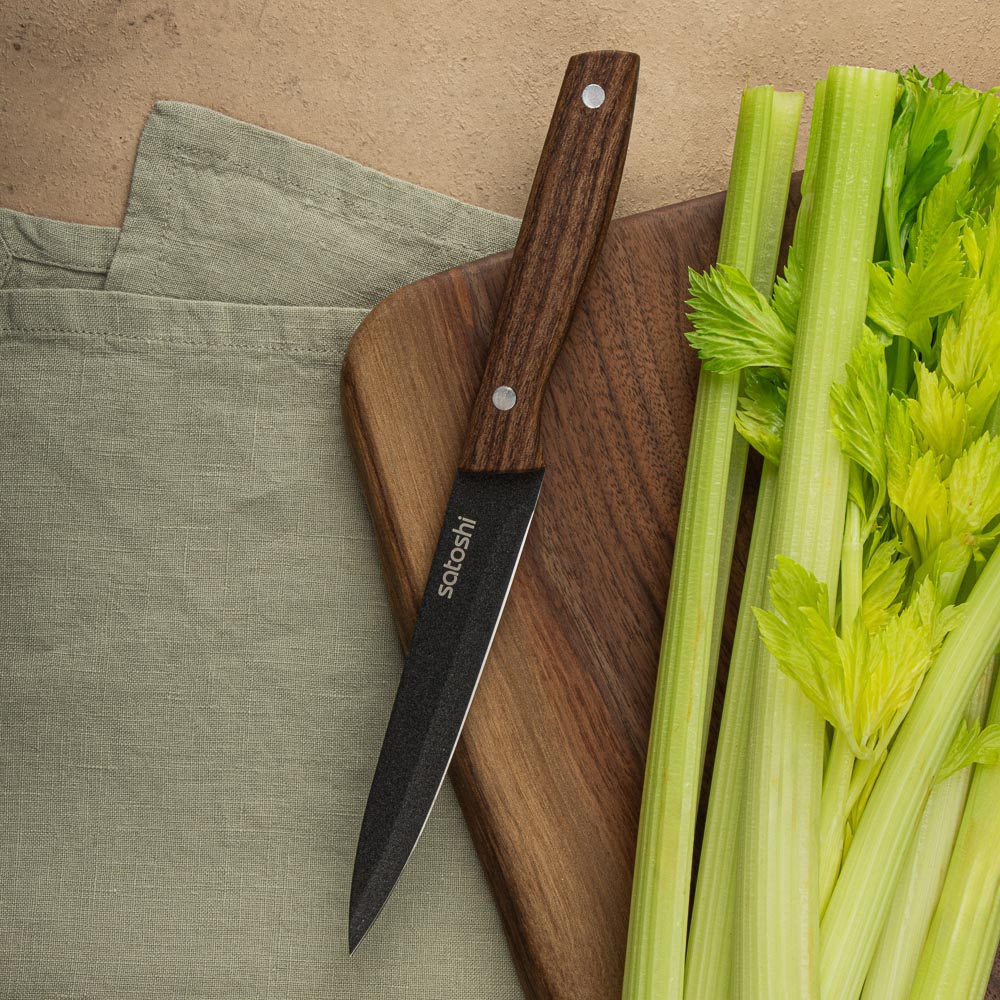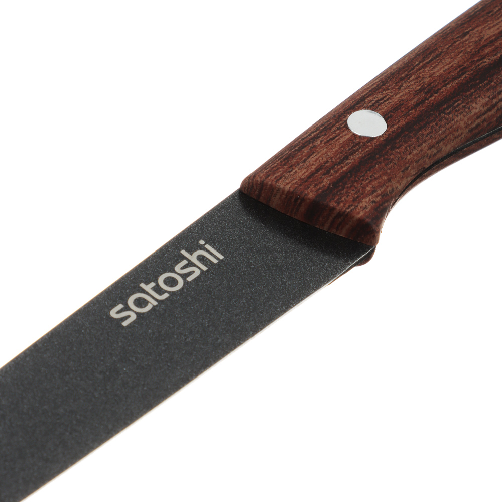 Нож кухонный универсальный SATOSHI Меллер с лезвием 12,7 см из нержавеющей стали подходит для нарезки фруктов и овощей, разделки и нарезки рыбы и мясных деликатесов, сыров и других продуктов. Геометрия клинка позволяет приспособить его под любые нужды. Нержавеющая сталь обладает хорошими эксплуатационными свойствами, коррозионностойкая, износостойкая и легко поддается заточке любыми заточными инструментами. Специальное покрытие делает процесс нарезки более комфортным, так как продукты не налипают на клинок. Рукоять с покрытием soft-touch удобно фиксируется в руке, не выскальзывая в процессе использования. Универсальный нож SATOSHI имеет стильный дизайн, вписываясь в интерьер любой кухни.