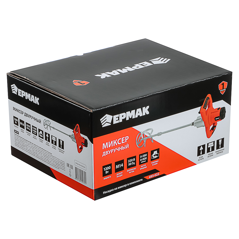 ЕРМАК Миксер электрический двуручный, 1200 Вт, М14, 0-900 об/мин, венчик