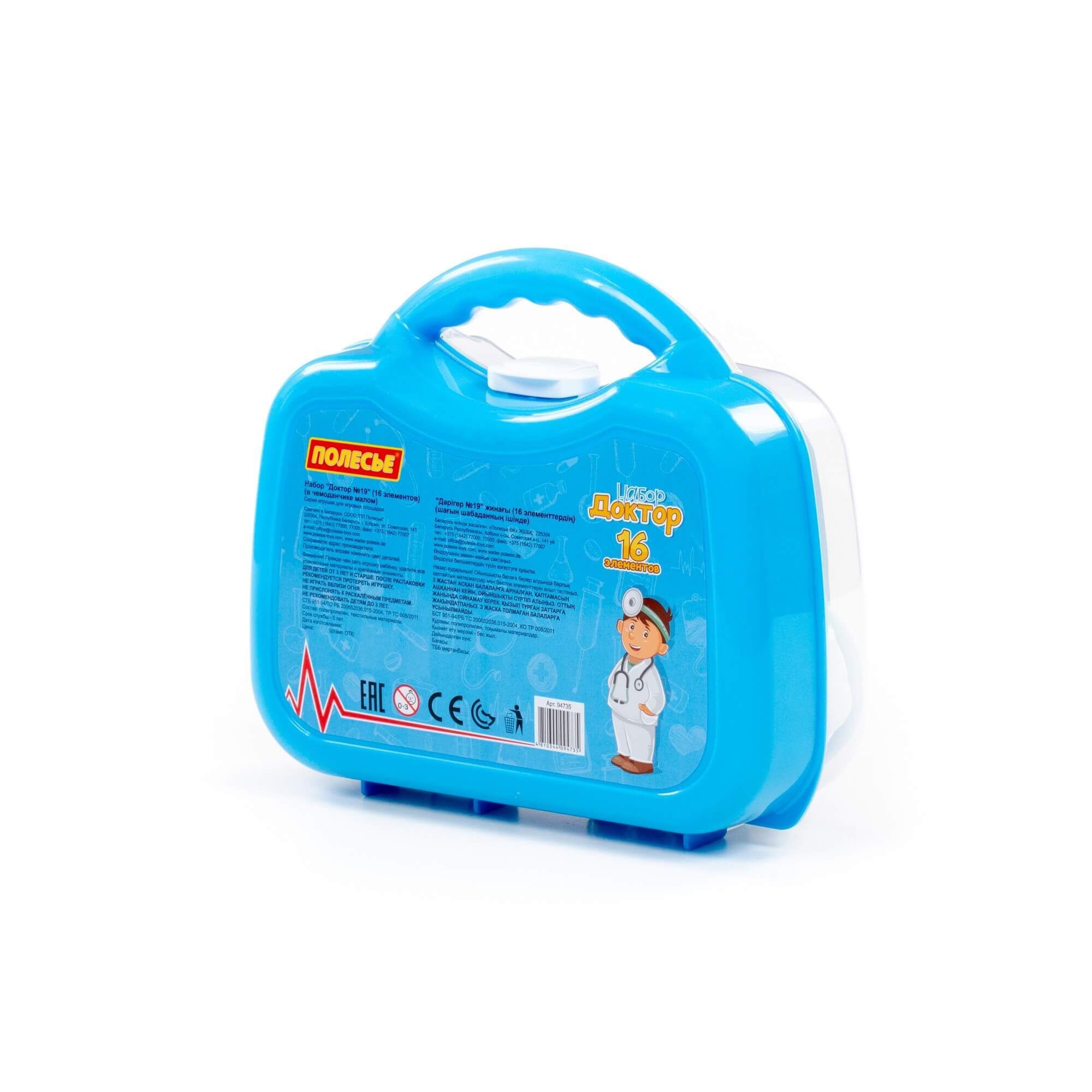 Набор «Доктор № 19» позволит ребенку познакомиться с профессией врача. Элементы помещены в удобный чемоданчик с ручкой. В состав набора входят: