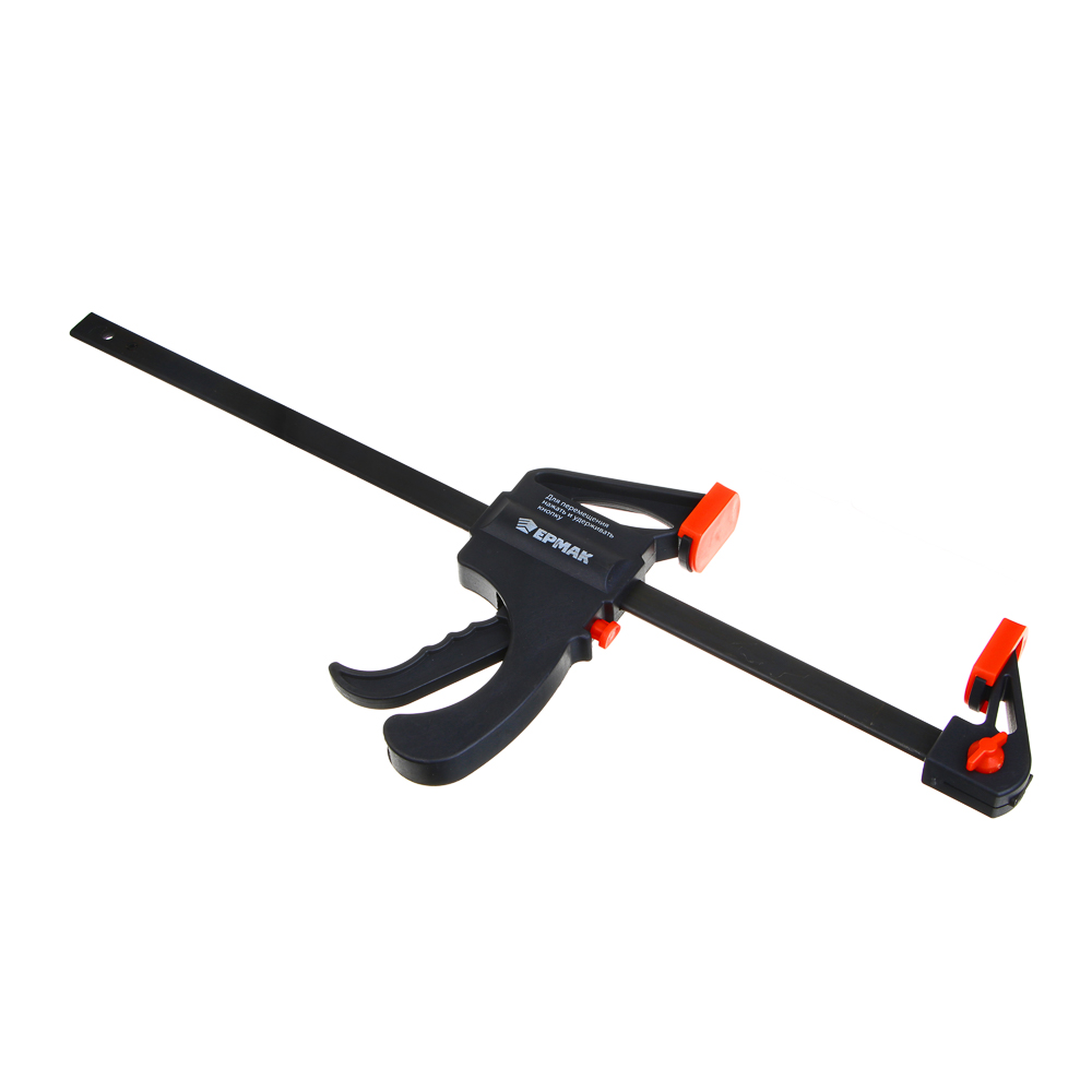 Универсальная F-образная струбцина ЕРМАК применяется в слесарных работах. Инструмент используется для зажатия и фиксации различных деталей и заготовок, а также для склеивания под нажимом. Фиксация и степень нажима регулируются кнопкой. Корпус выполнен из прочного пластика.